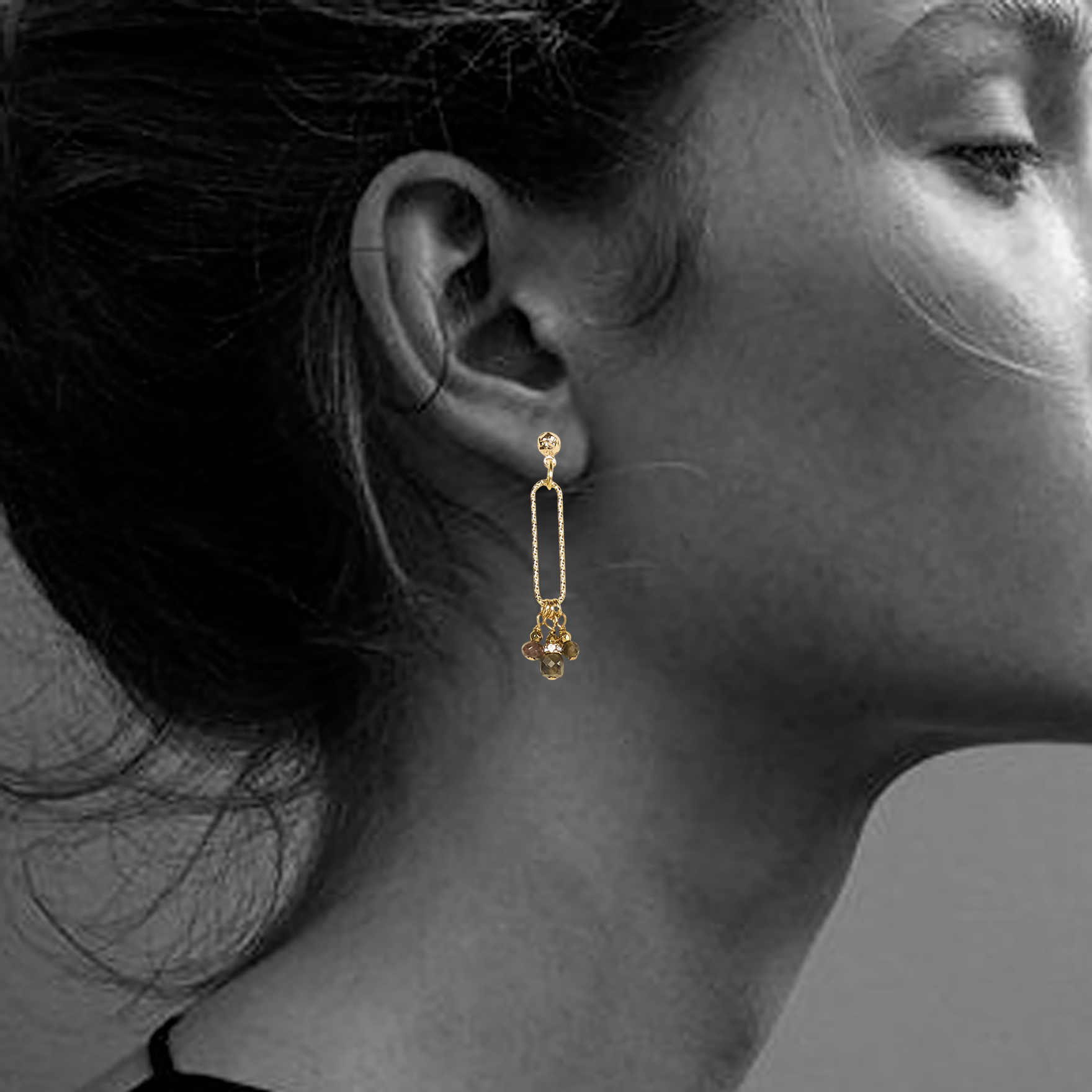 Les boucles d'oreilles Cris grises allient obsidienne et anneau ovale délicatement ciselé. Légères et mobiles, elles apportent une touche délicate et féminine.