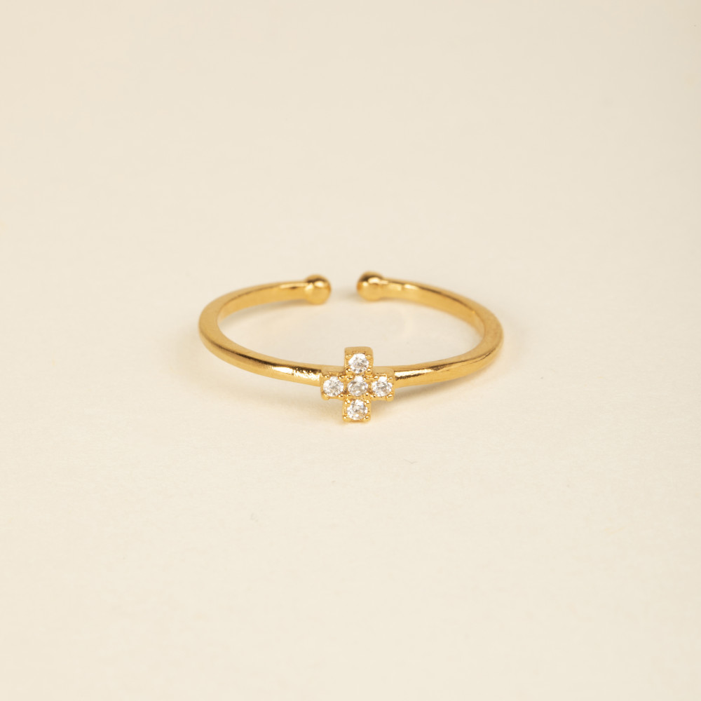 Sublimez votre main avec cette bague ajustable, ornée de cristaux étincelants et délicatement dorée à l'or fin 24 carats.