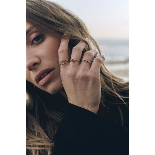 Sublimez votre main avec cette bague ajustable, ornée de cristaux noirs étincelants et délicatement dorée à l'or fin 24 carats.