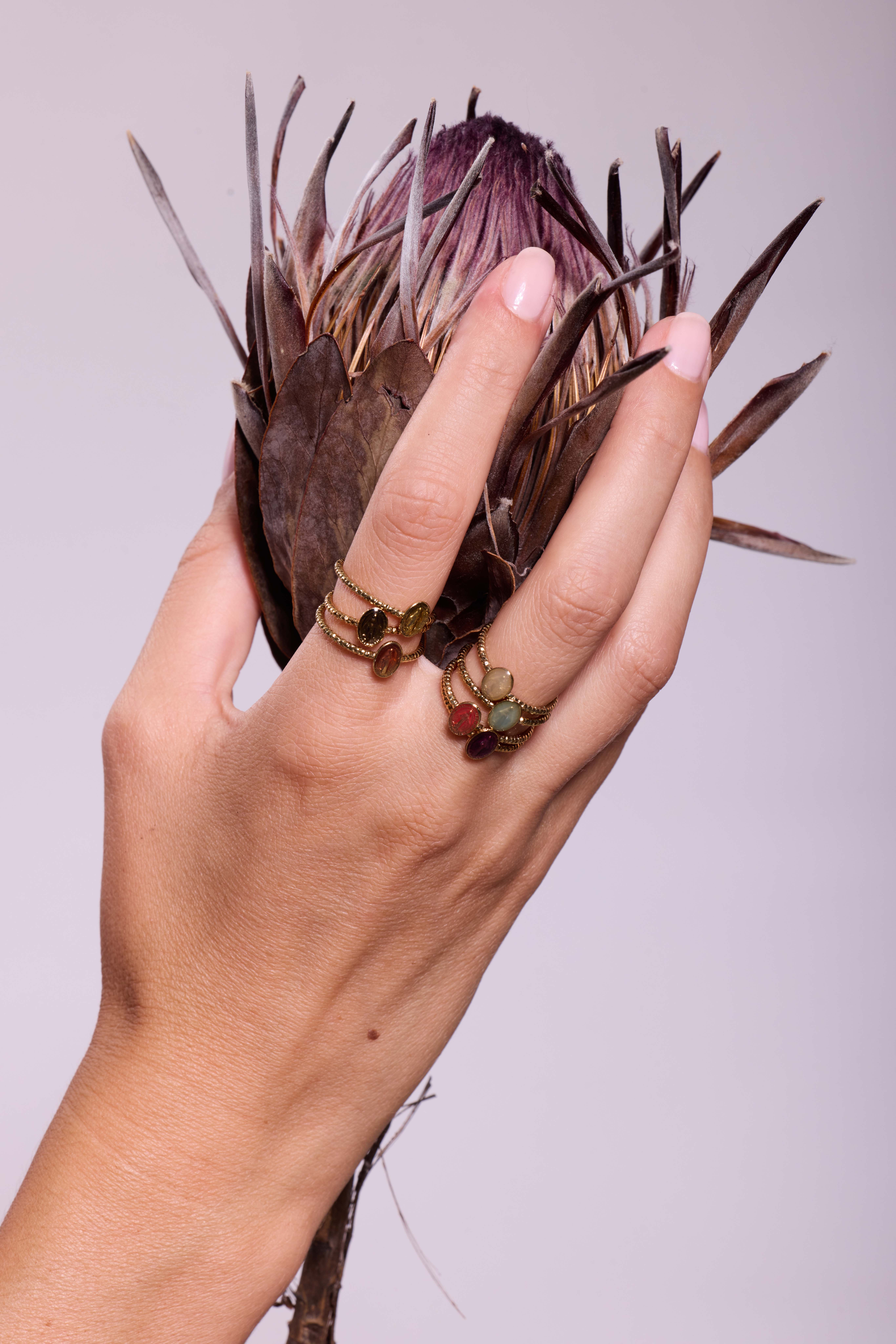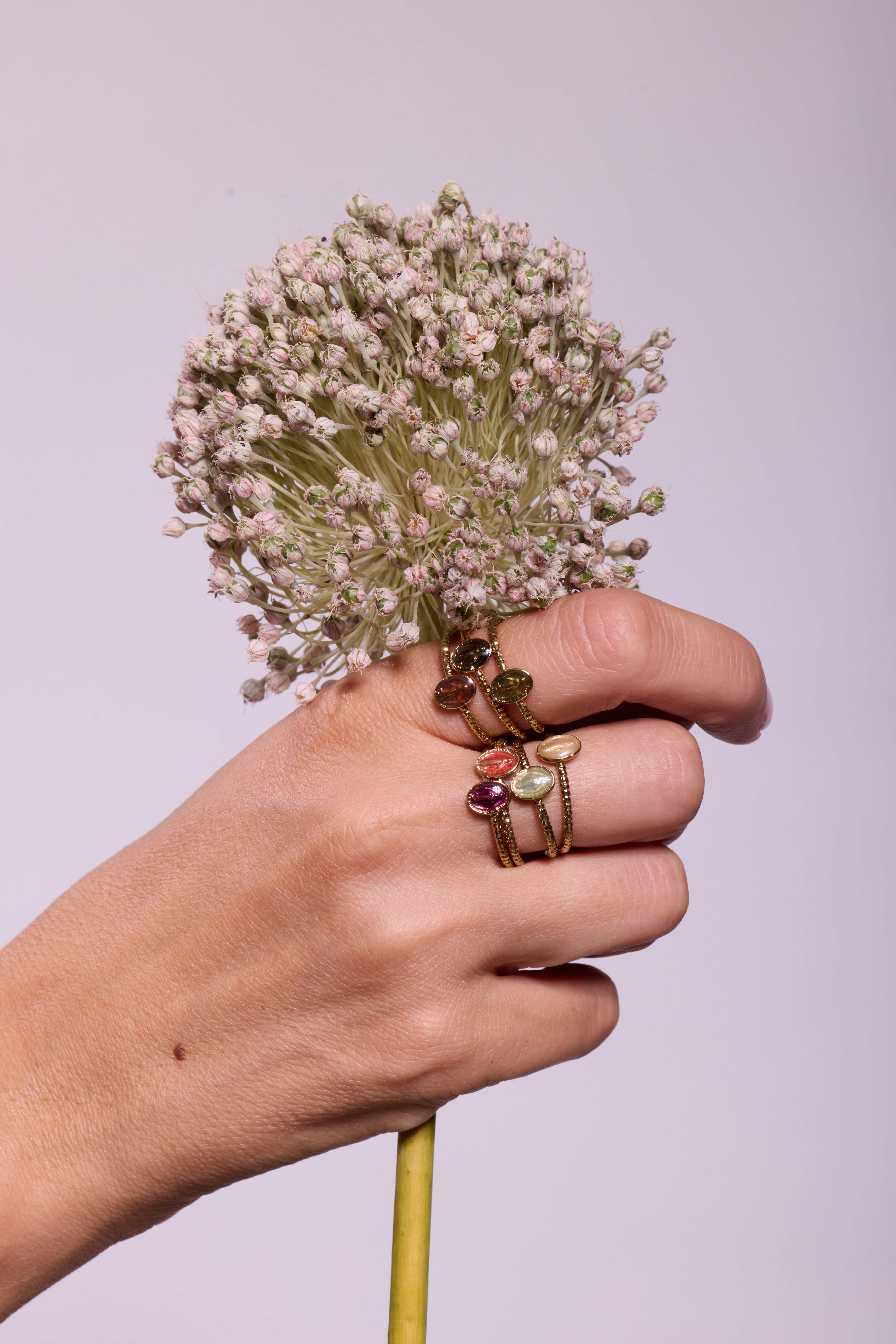 Les bagues Ivor se composent d'une médaille Vierge Miraculeuse émaillée à la main sur un anneau ajustable torsadé et se déclinent en 8 coloris d'émail.