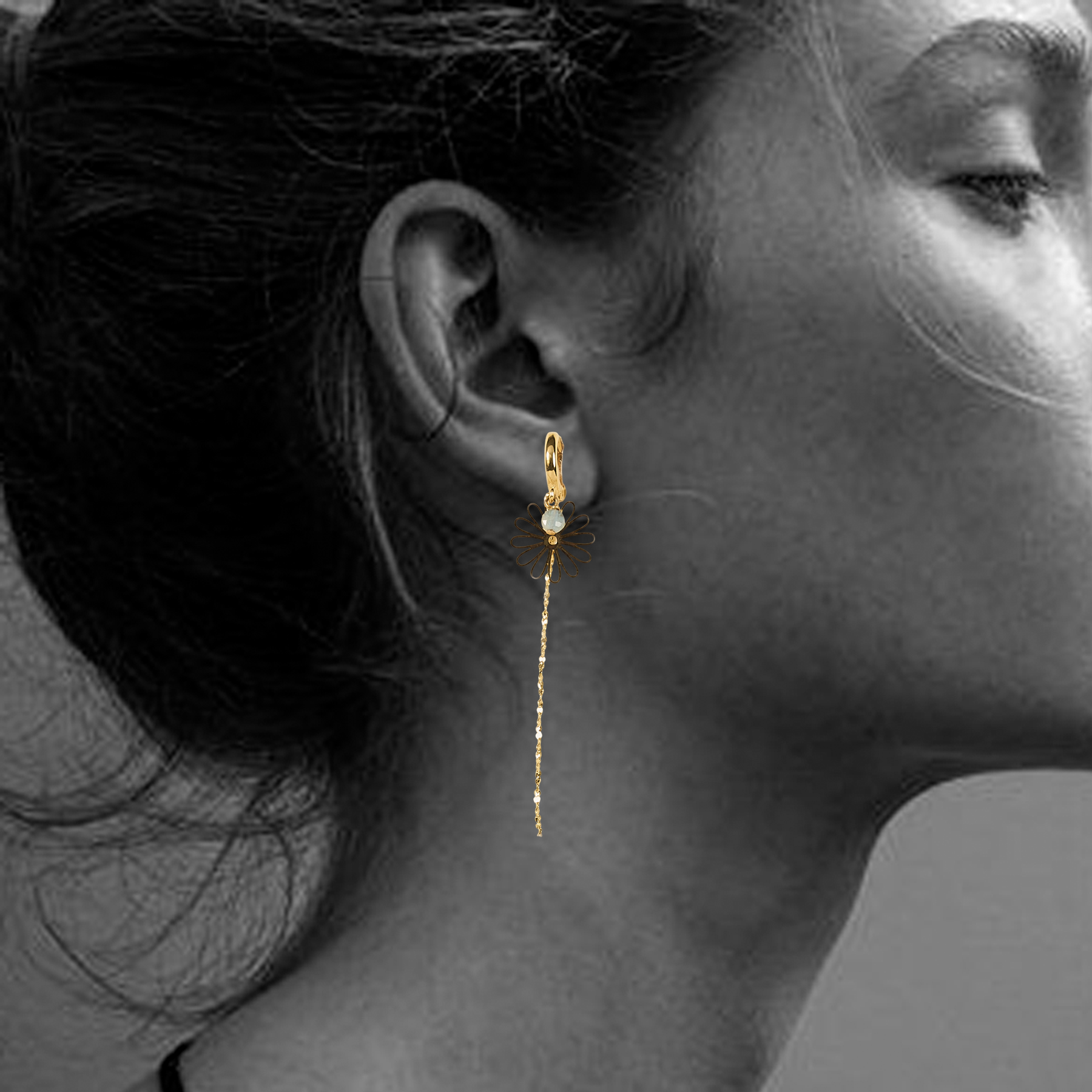 Les boucles d’oreilles Adra By Garance allient finesse et originalité dans un design délicatement travaillé. Elles associent l'apatite à une chaîne élégante et un pendentif ajouré en forme de fleur, créant un bijou à la fois raffiné et plein de charme.
