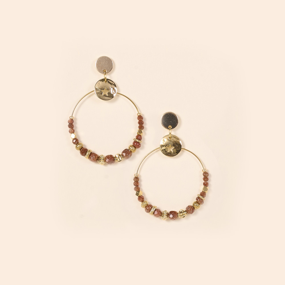 Les boucles d’oreilles Arty, pièce iconique au charme solaire, incarnent l’esprit raffiné et audacieux de notre maison. Elles associent avec élégance la sunsand brique à des perles dorées aux formes variées, délicatement montées sur un anneau rond de 3 cm de diamètre.