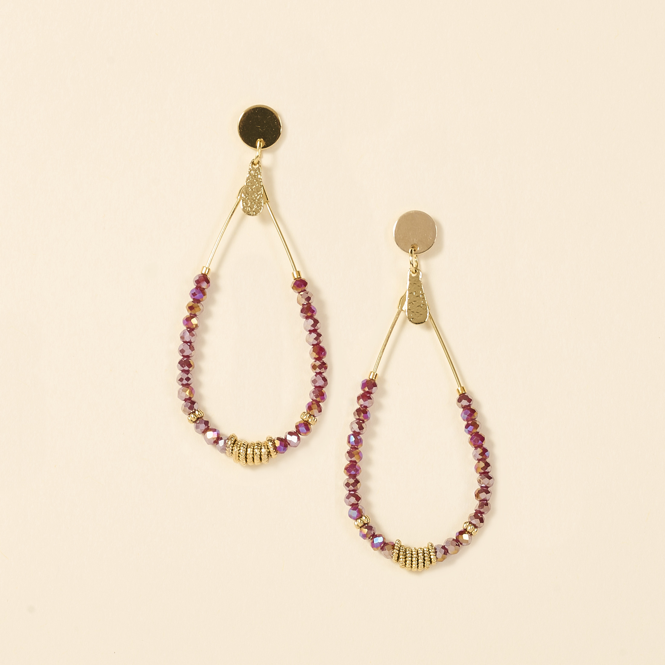 Les boucles d’oreilles Bory séduisent par leur allure élégante et leur éclat raffiné. Dorées à l’or fin, elles se composent d’un anneau en forme de goutte de 5 cm orné de perles en cristal facettées, qui captent la lumière à chaque mouvement.