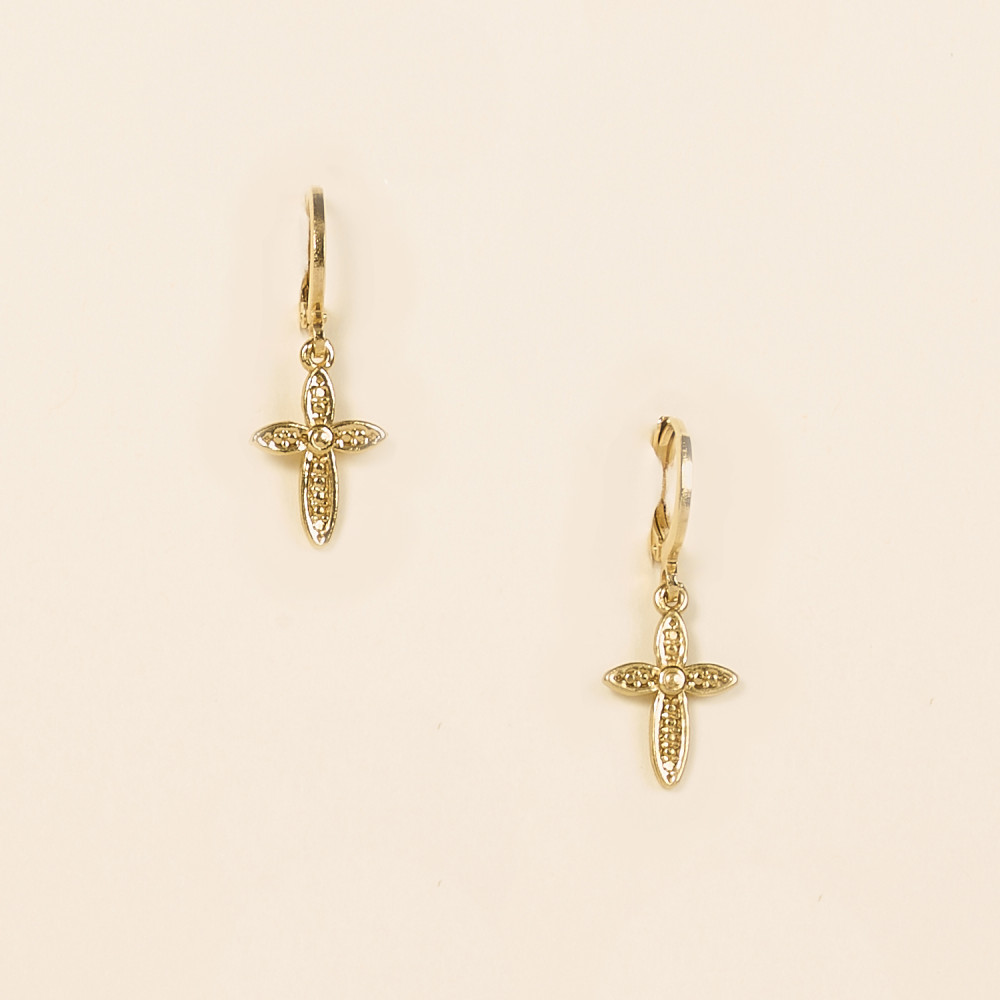 Elles se composent d’une dormeuse lisse dorée à l’or fin 24 carats et d’une médaille croix finement ciselée.