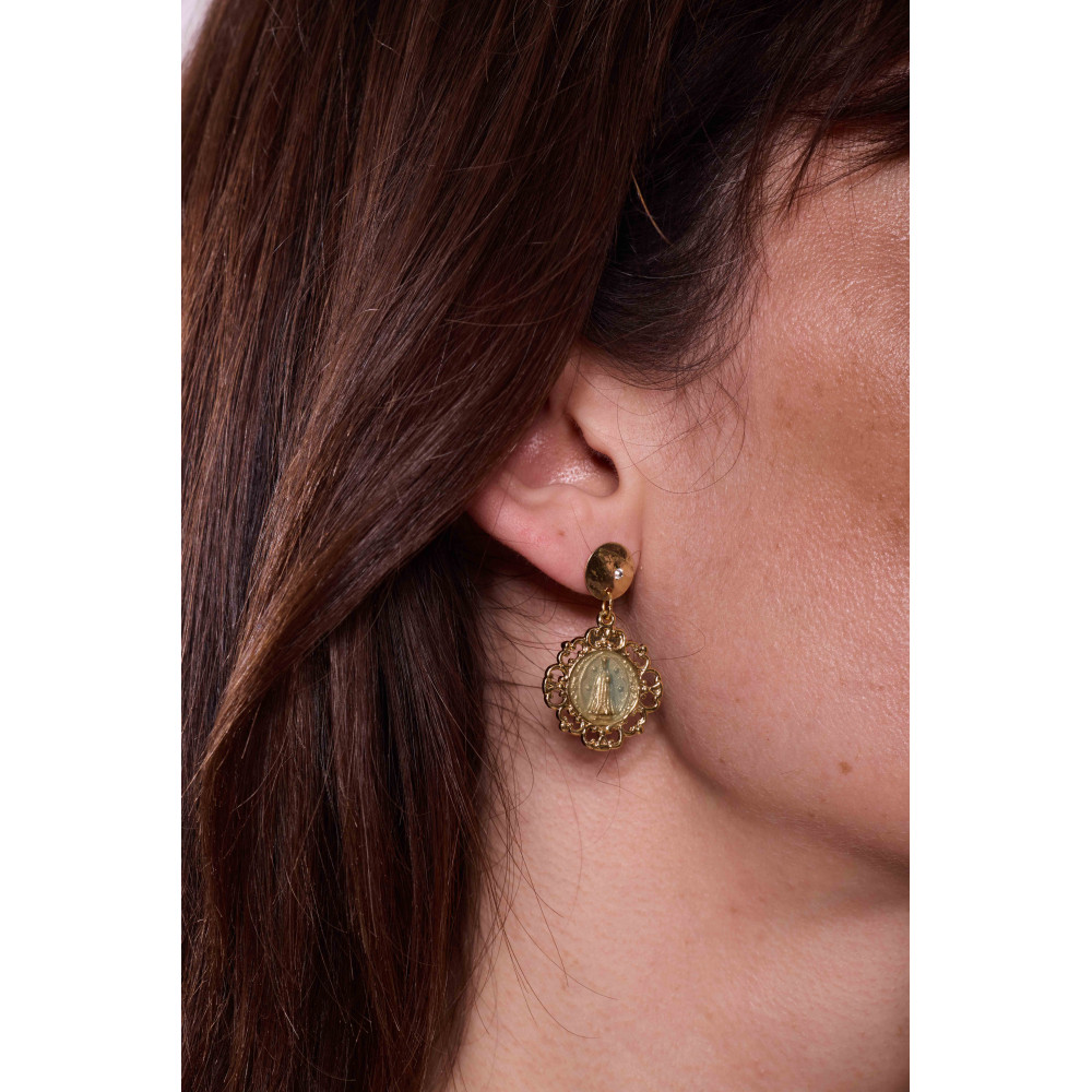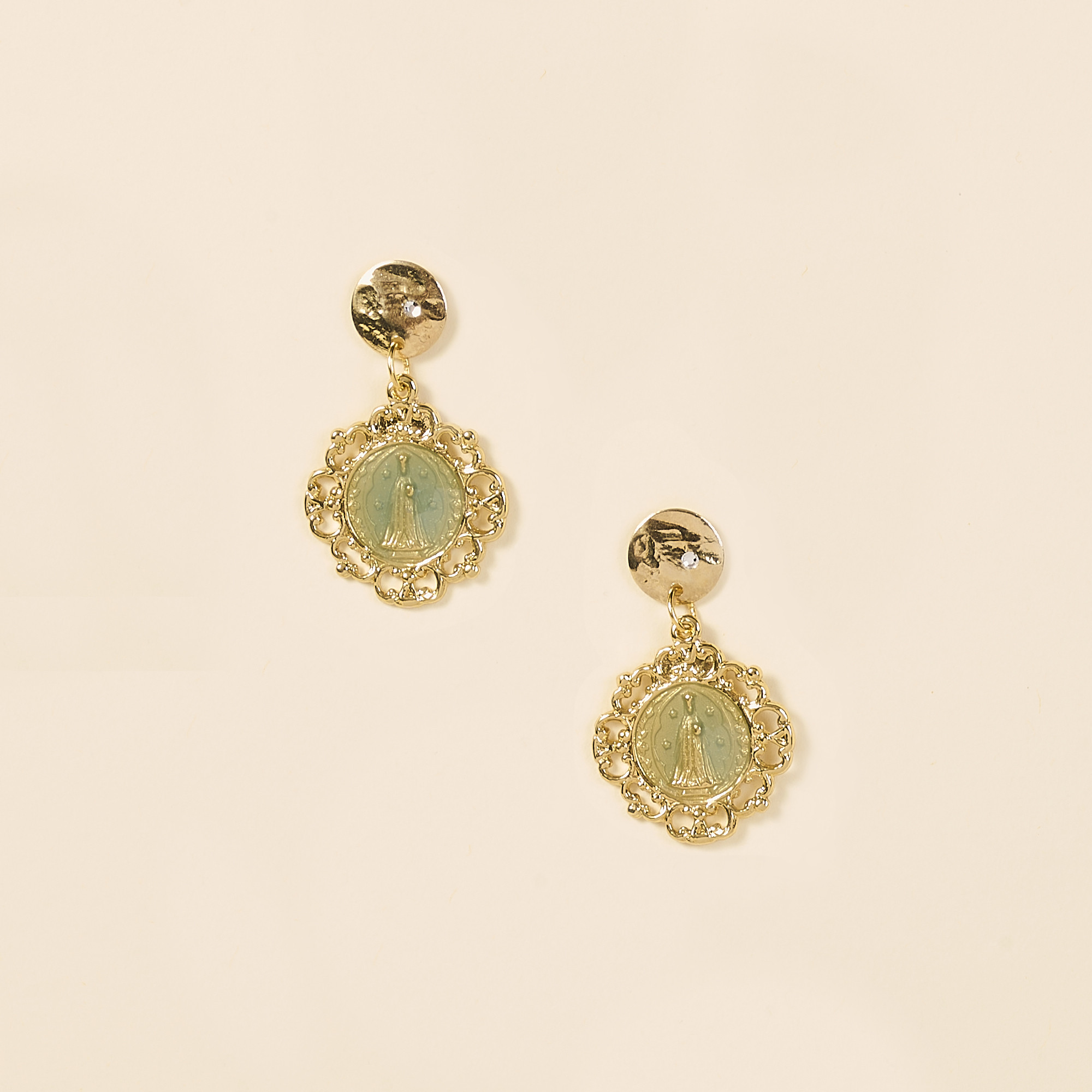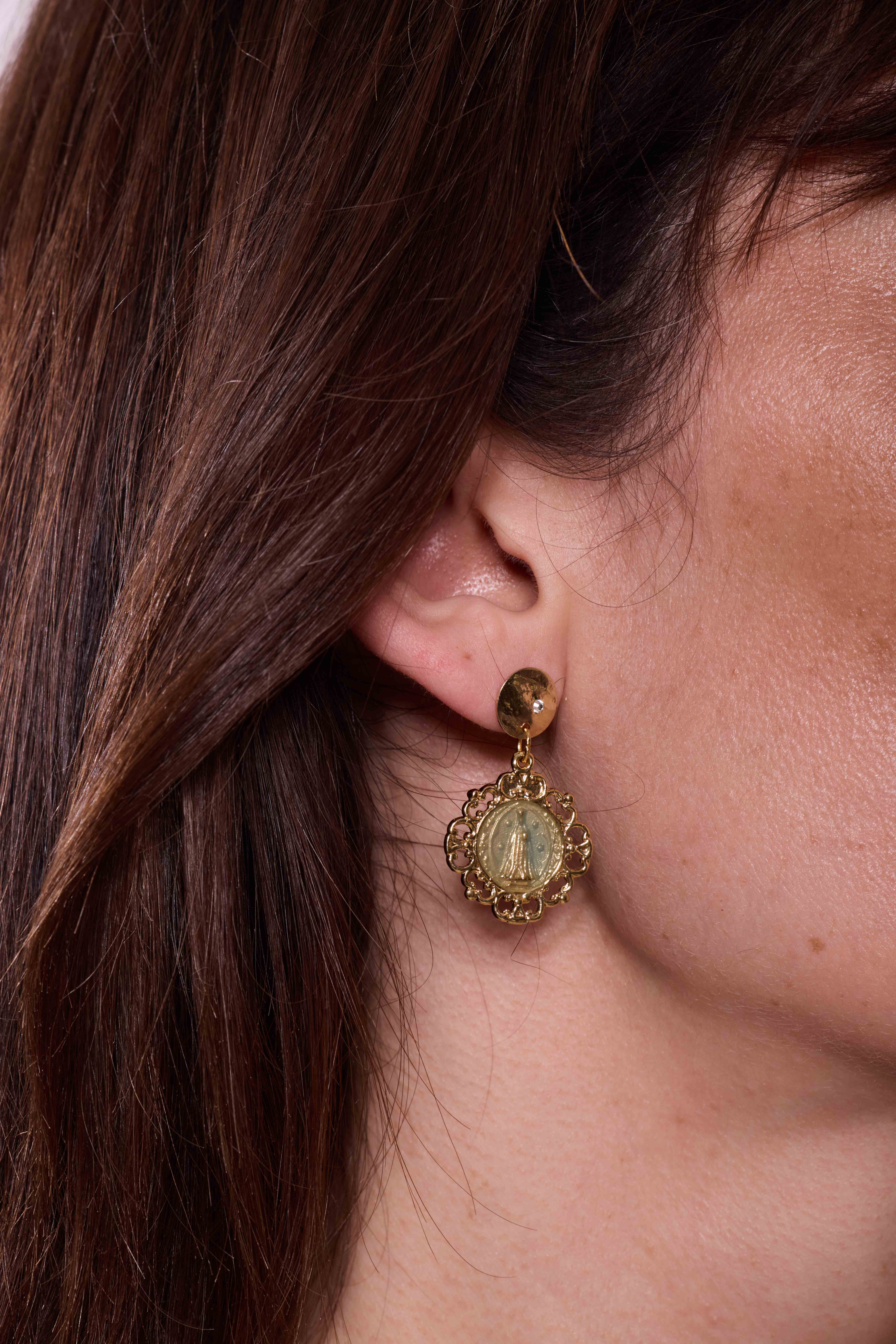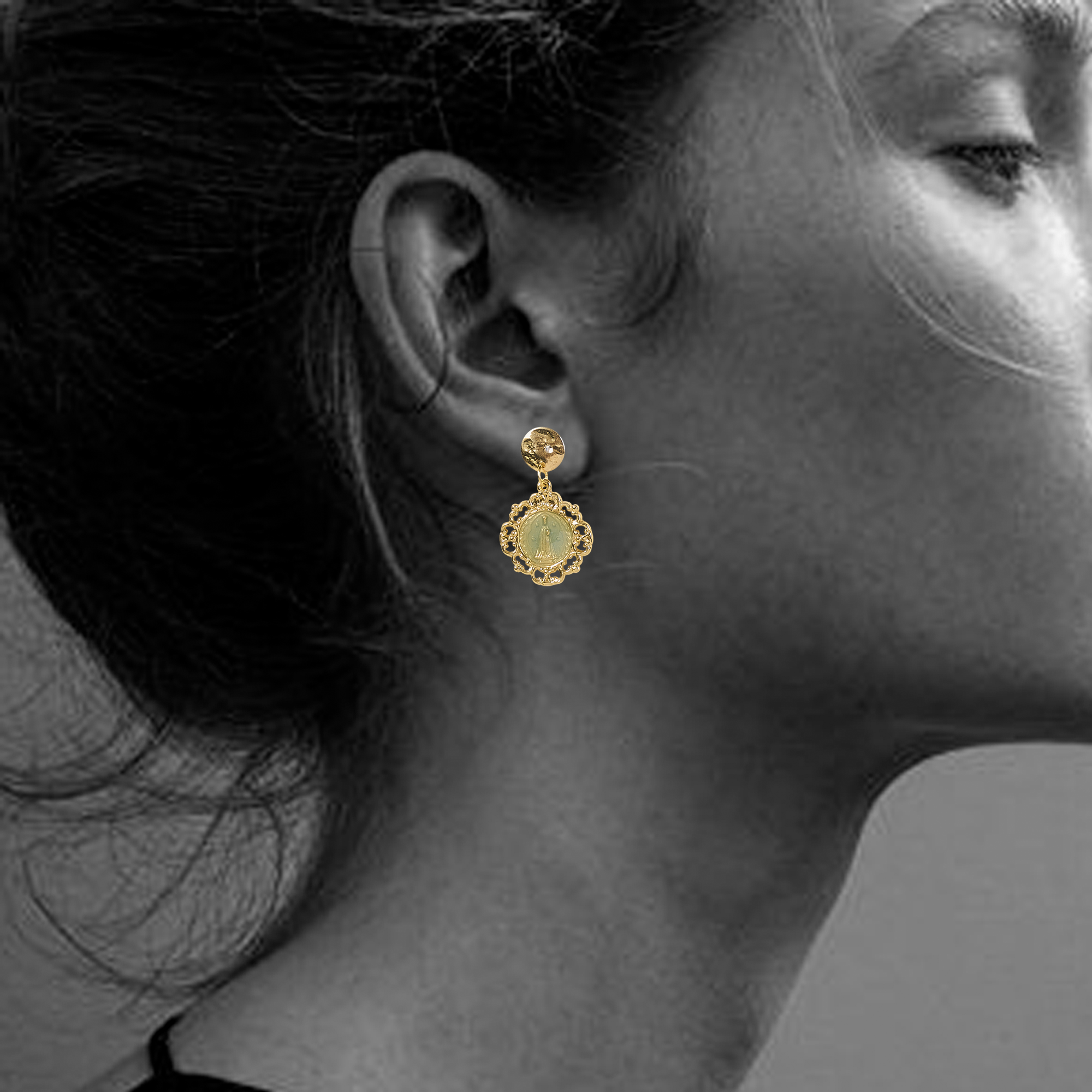 Elles sont composées d’une dormeuse en laiton doré à l’or fin 24 carats, ornée d’une médaille représentant la Vierge, auréolée d’étoiles.