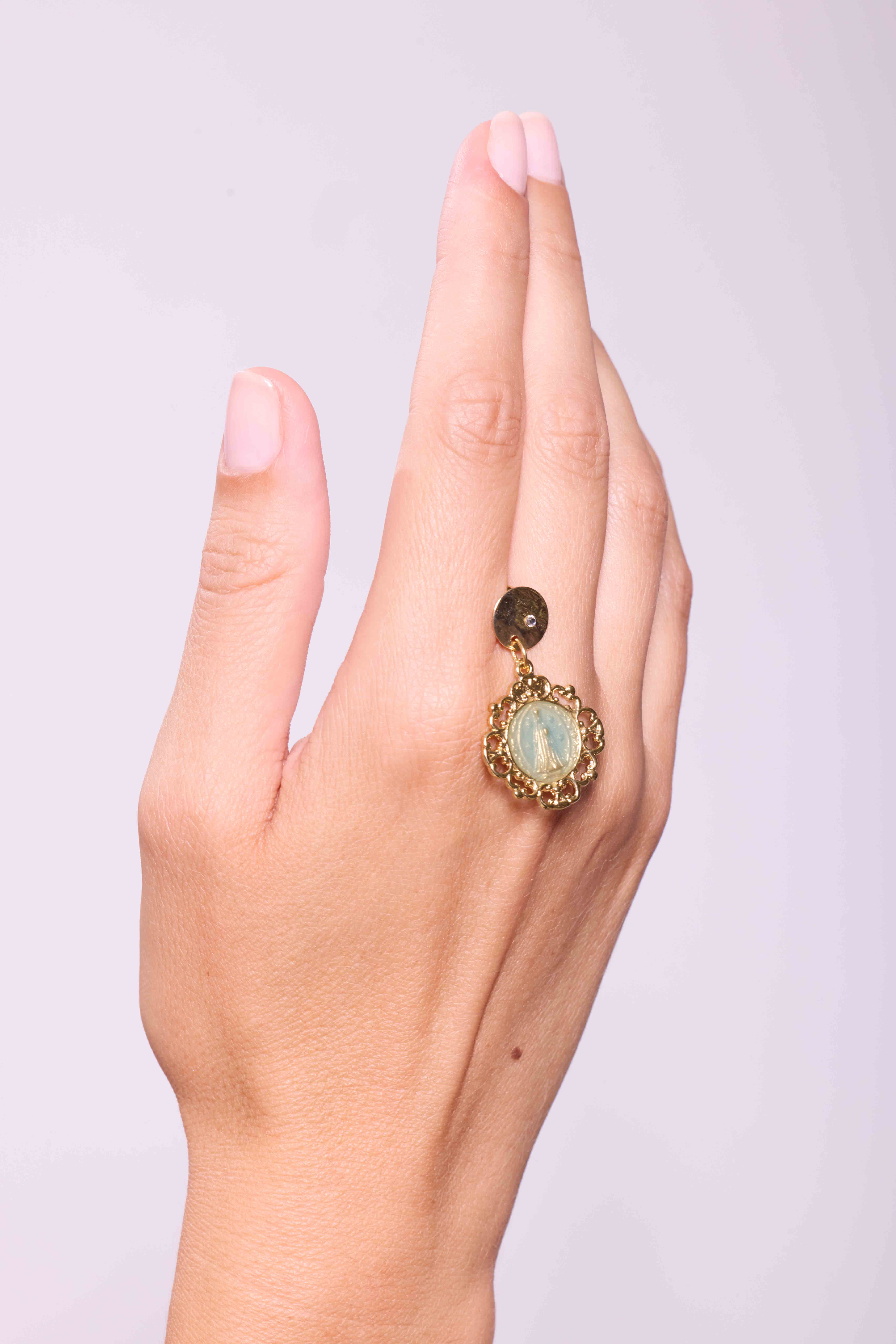 L’émail transparent révèle avec douceur la silhouette de la Vierge, tout en diffusant une subtile touche de lumière et d’éclat.