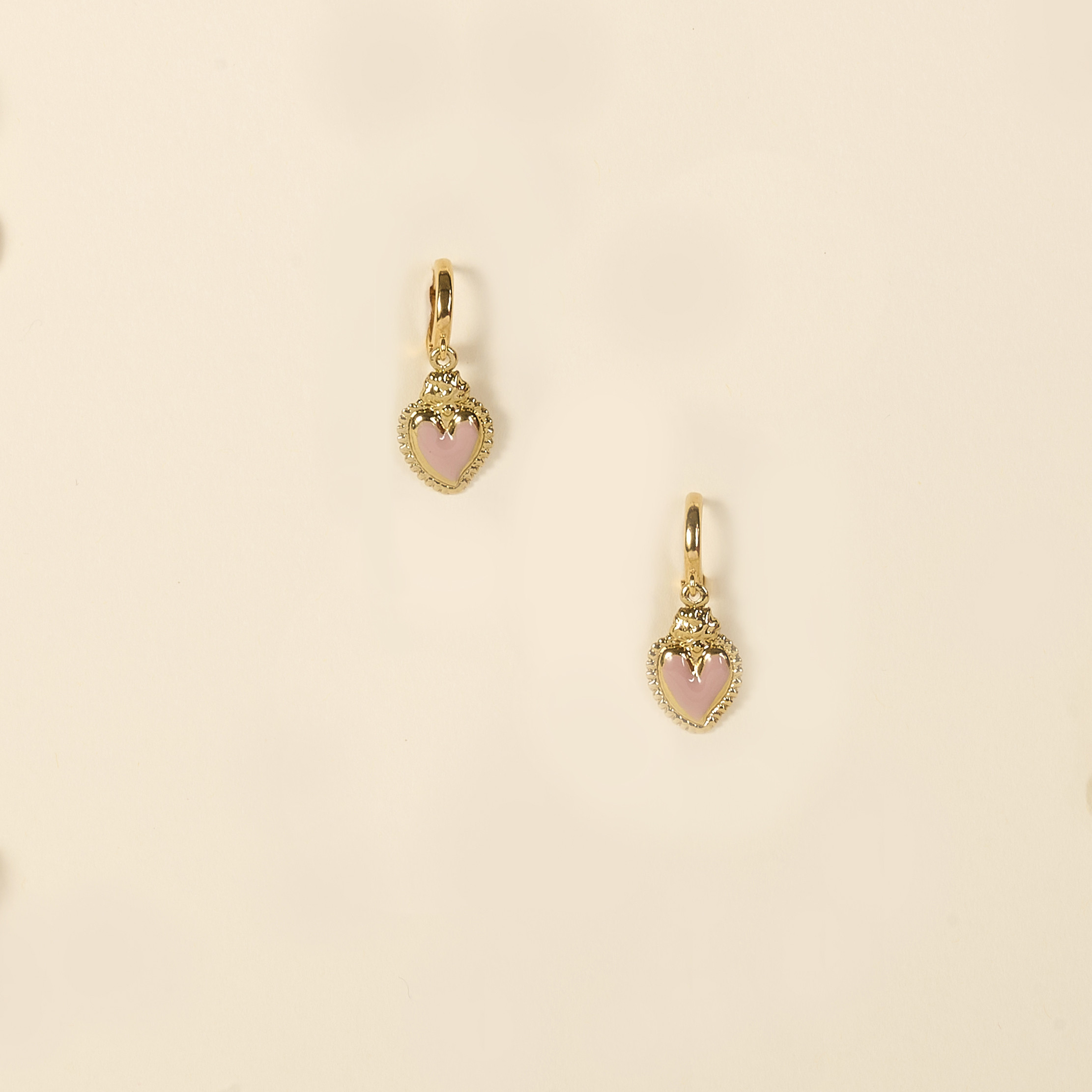 Les boucles d’oreilles Lumi Rose Clair séduisent par leurs nuances tendres et féminines. Le cœur émaillé rose pâle s’harmonise au doré pour une allure douce et lumineuse.