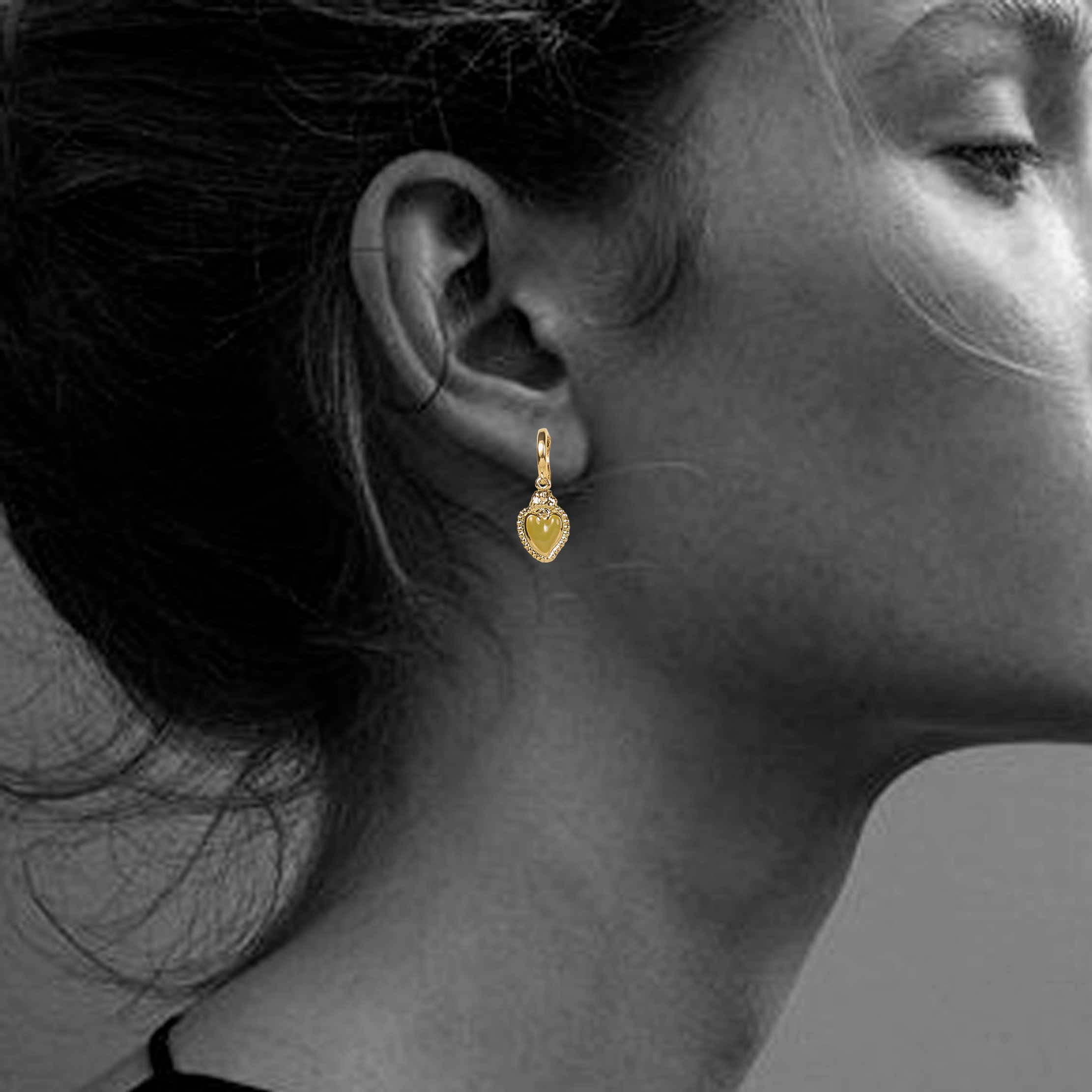 Les boucles d’oreilles Lumi Kaki marient le doré chaud à un émail vert profond, pour un rendu à la fois naturel et sophistiqué.
