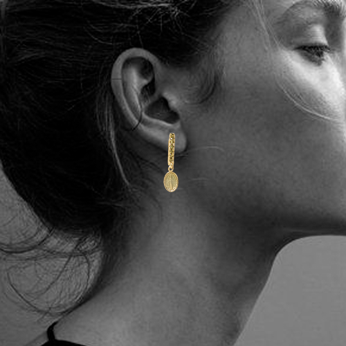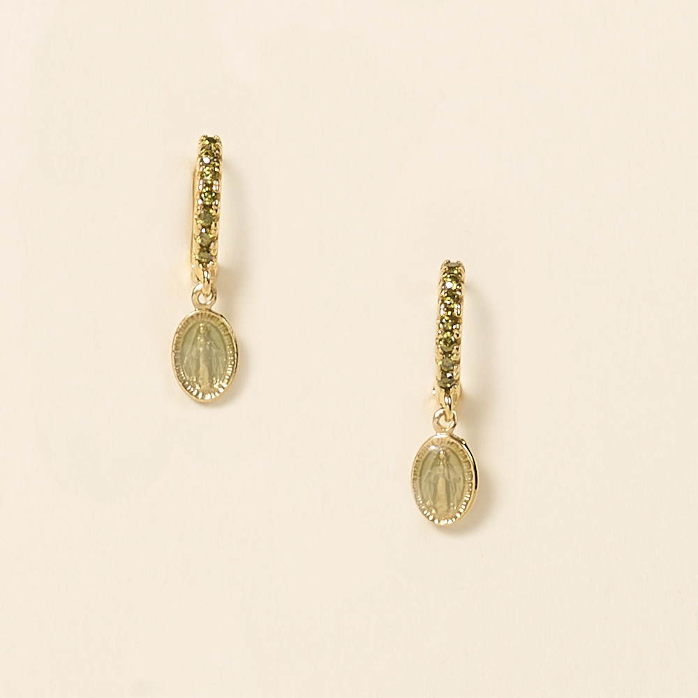 Les boucles d’oreilles Lyra Céladon mêlent la fraîcheur du vert pâle à la brillance du doré. La médaille émaillée et sertie de zircons révèle une élégance subtile et intemporelle.
