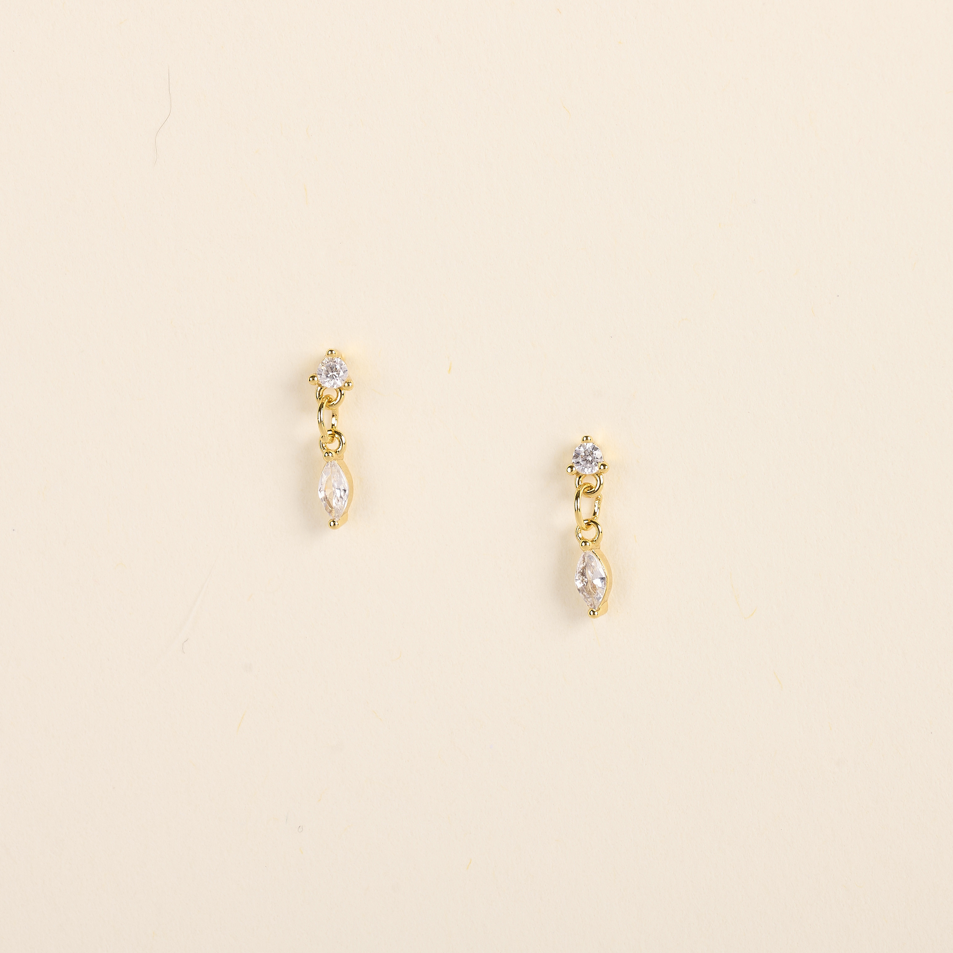 Les boucles d’oreilles Sela, dorées à l’or fin 24 carats, sont composées d'un oxyde rond et d'un second en forme de navette qui captent la lumière avec grâce, pour un effet étincelant et lumineux.
