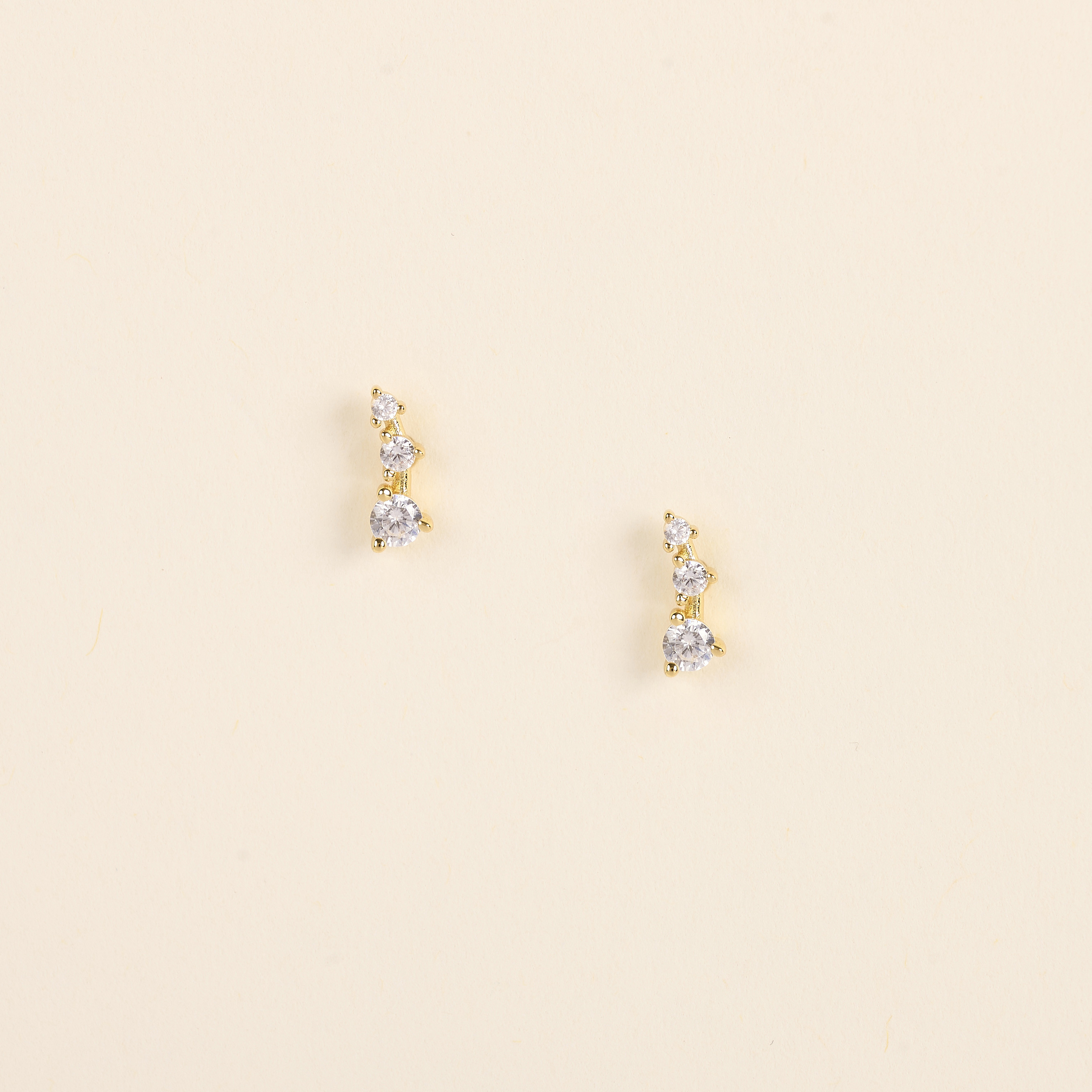 Les boucles d’oreilles Sela, dorées à l’or fin 24 carats, sont composées de trois oxydes incurvés de tailles différentes qui captent la lumière avec grâce, pour un effet étincelant et lumineux.