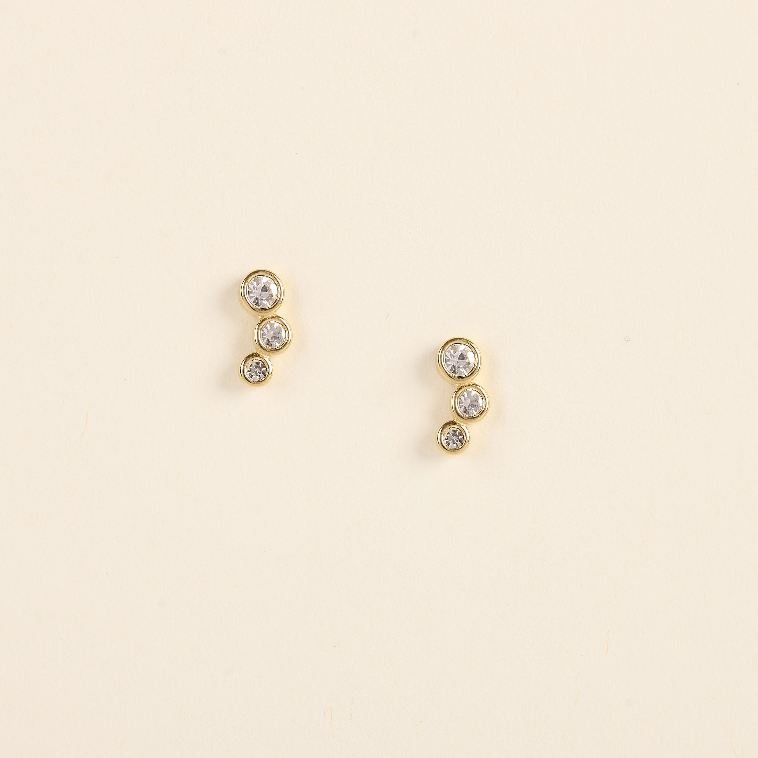 Les boucles d’oreilles Stan, en acier inoxydable, sont composées de trois oxydes incurvés sertis clos qui captent la lumière avec délicatesse pour un effet étincelant et lumineux.