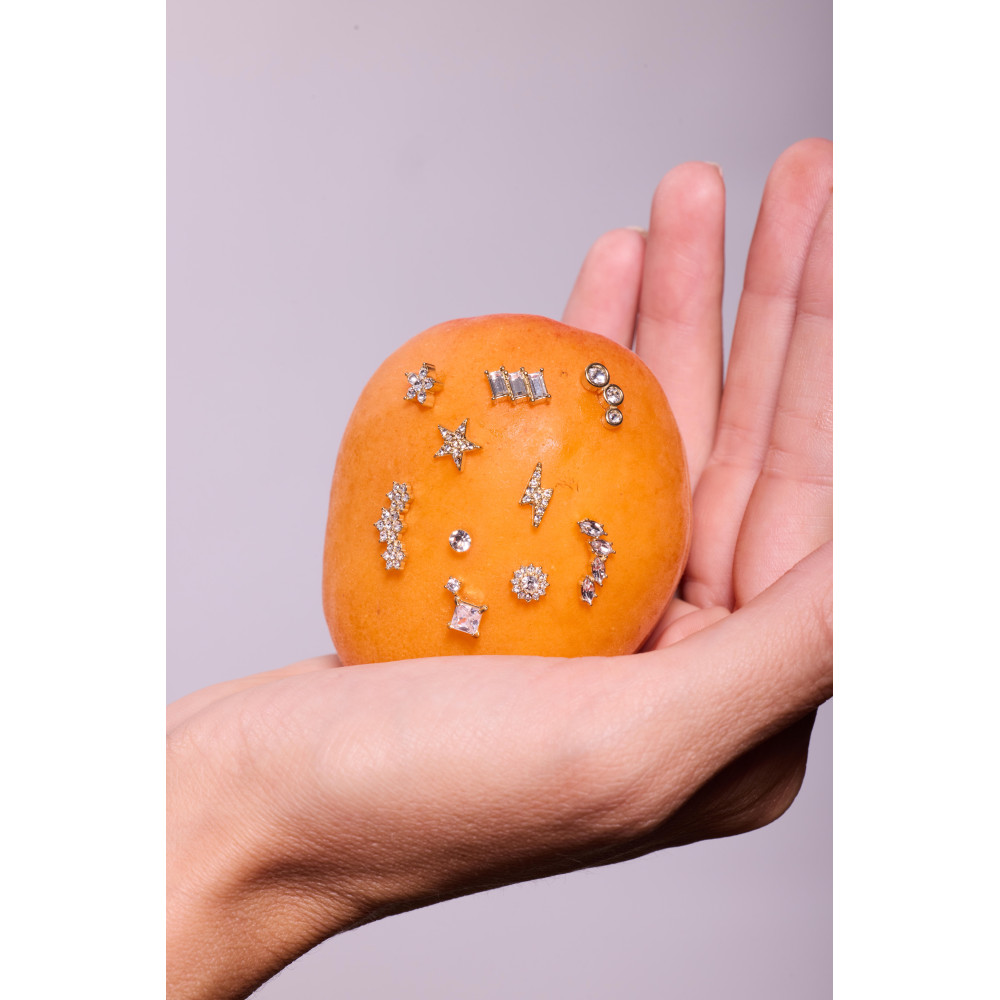 Les boucles d’oreilles Stan, en acier inoxydable, sont composées d'un mini eclair pavés d'oxyde de zirconium qui captent la lumière avec délicatesse pour un effet étincelant et lumineux.