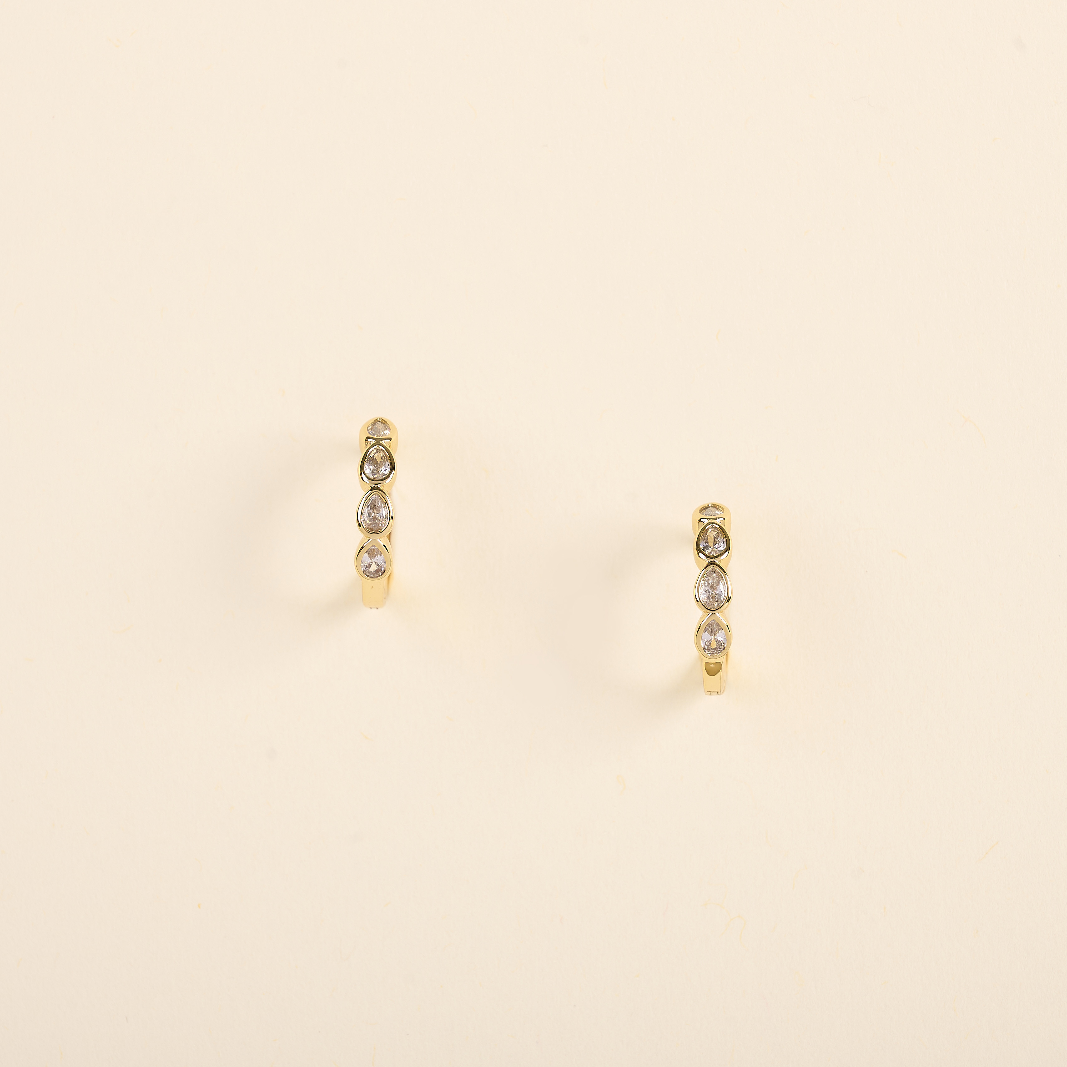 Les boucles d’oreilles Sila, dorées à l’or fin 24 carats, se composent d’une créole sertie d’oxydes de zirconium de tailles différentes.