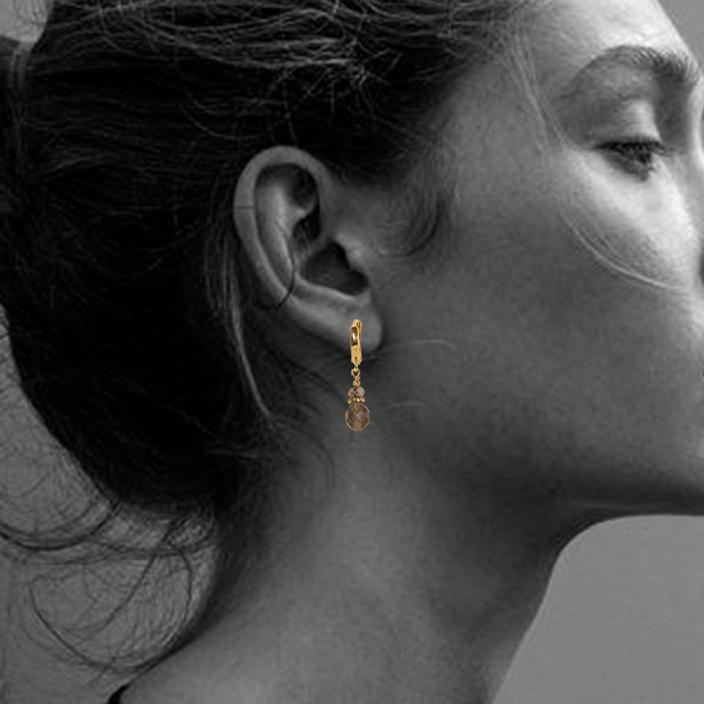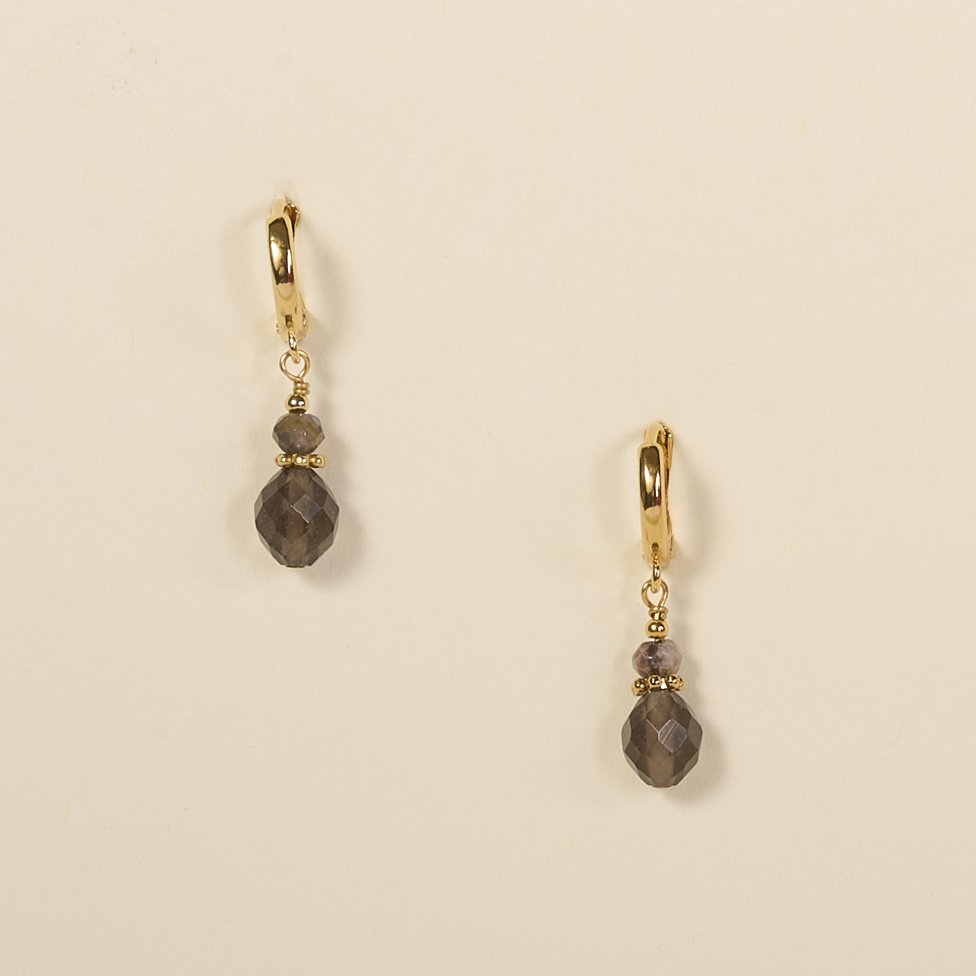 Les boucles d’oreilles Ciri se distinguent par leur finesse et leur délicatesse. Elles associent une perle ovale facettée à une perle ronde, toutes deux en obsidienne, pour un jeu d’éclats subtil et lumineux.