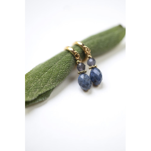 Les boucles d’oreilles Ciri se distinguent par leur finesse et leur délicatesse. Elles associent une perle ovale facettée à une perle ronde, toutes deux en lapis-lazuli, pour un jeu d’éclats subtil et lumineux.