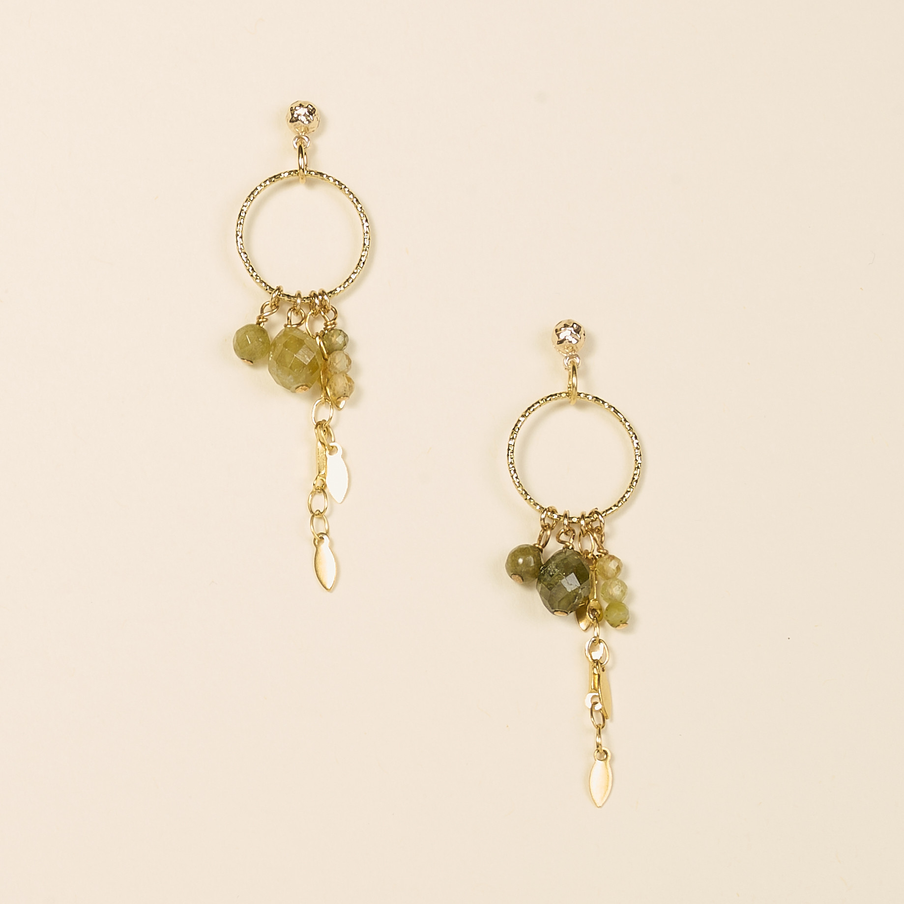 Les boucles d’oreilles Baïa allient l’éclat des pierres fines telles que : grenat vert, tourmaline verte à la finesse d’un anneau rond délicatement ciselé.