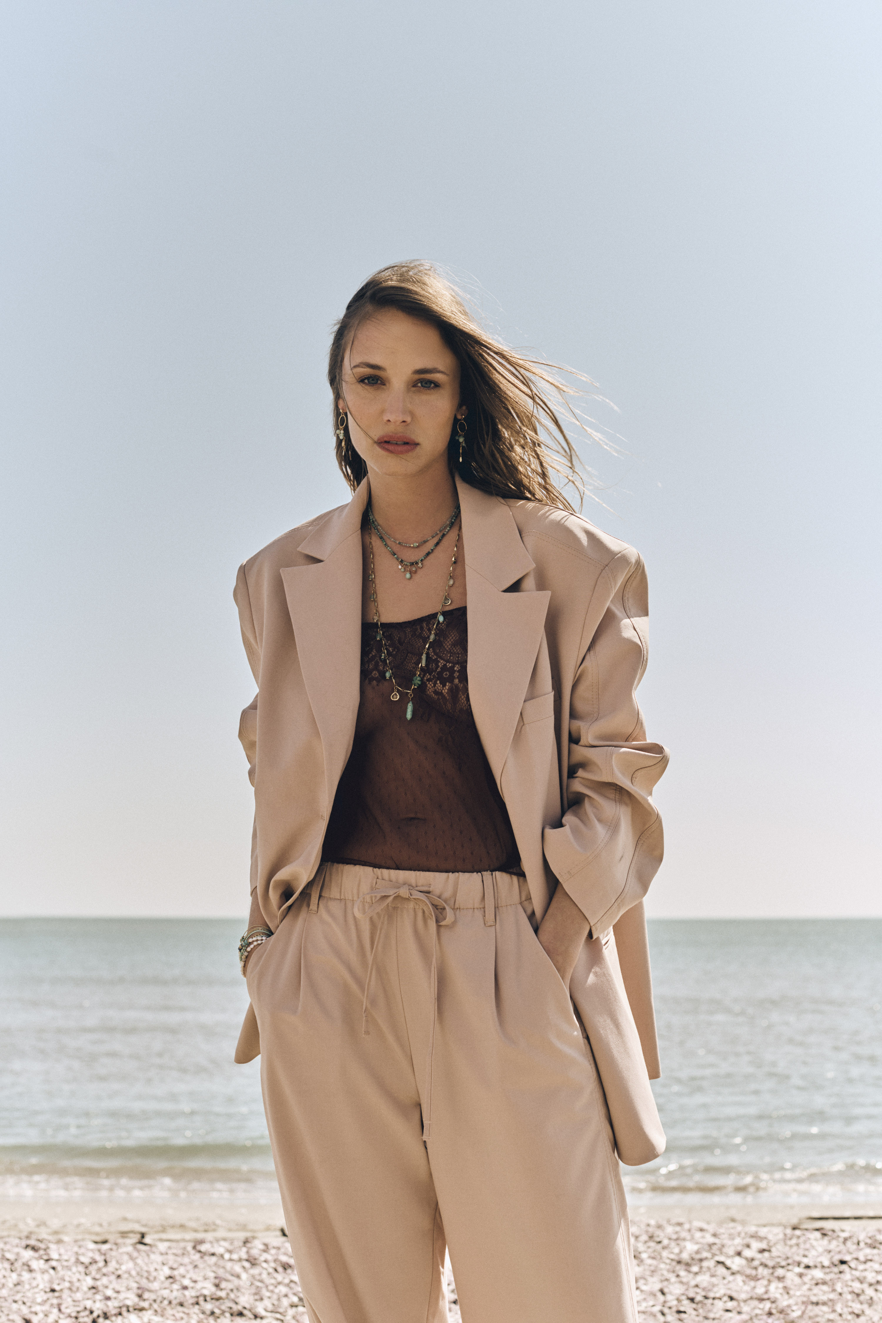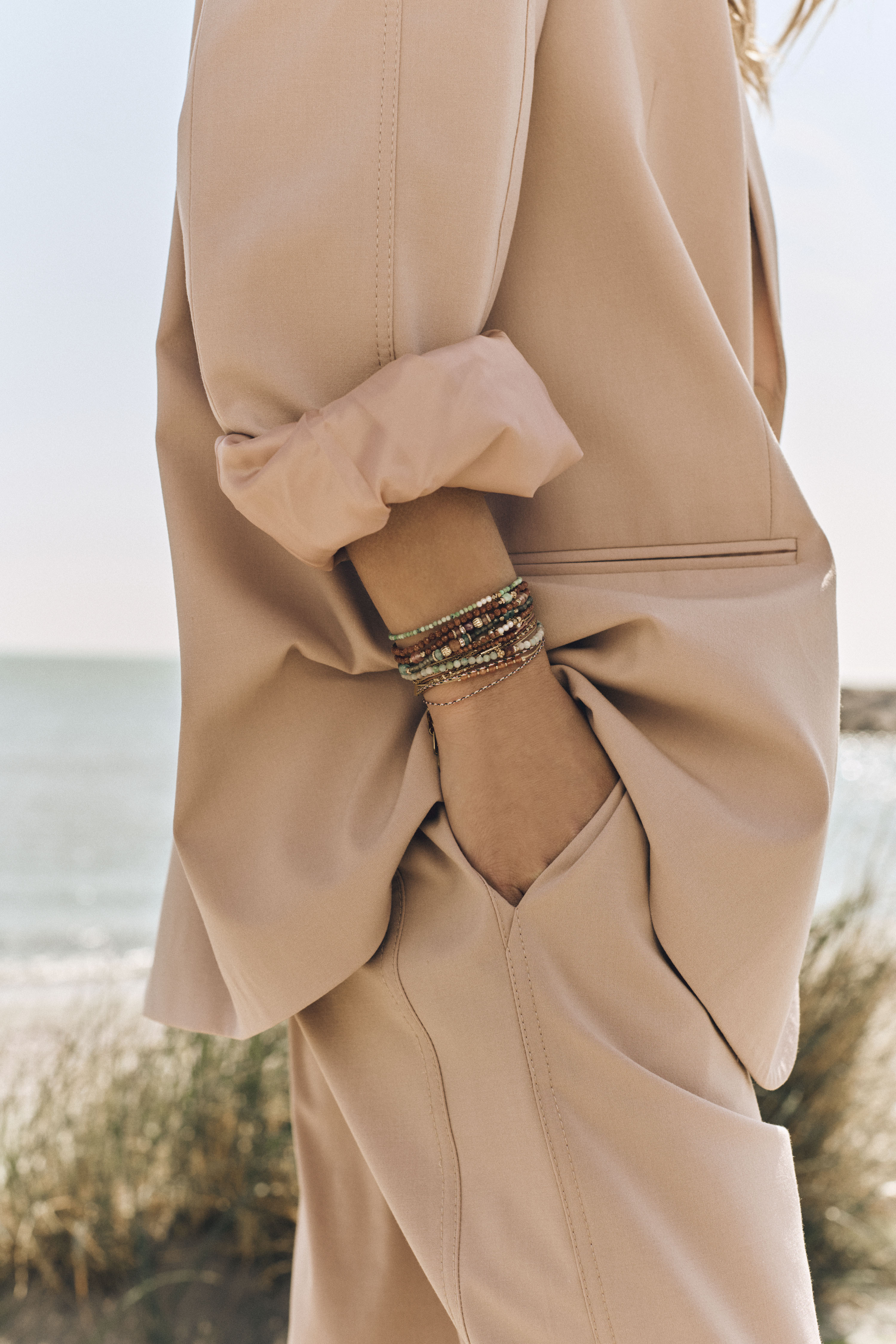 Le bracelet Abby associe l'amazonite céladon et à la sunsand terracotta.