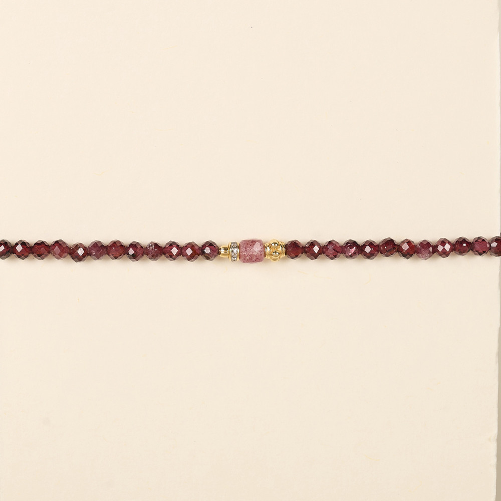 Le bracelet Abby associe le grenat bordeaux et le quartz cherry.