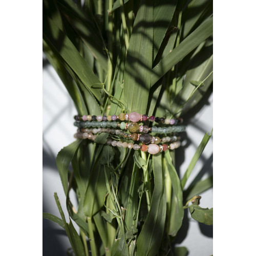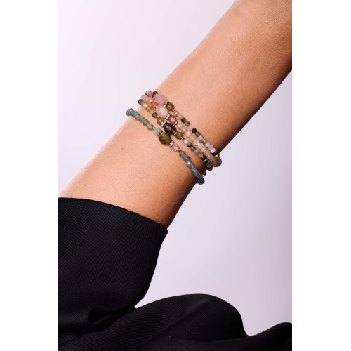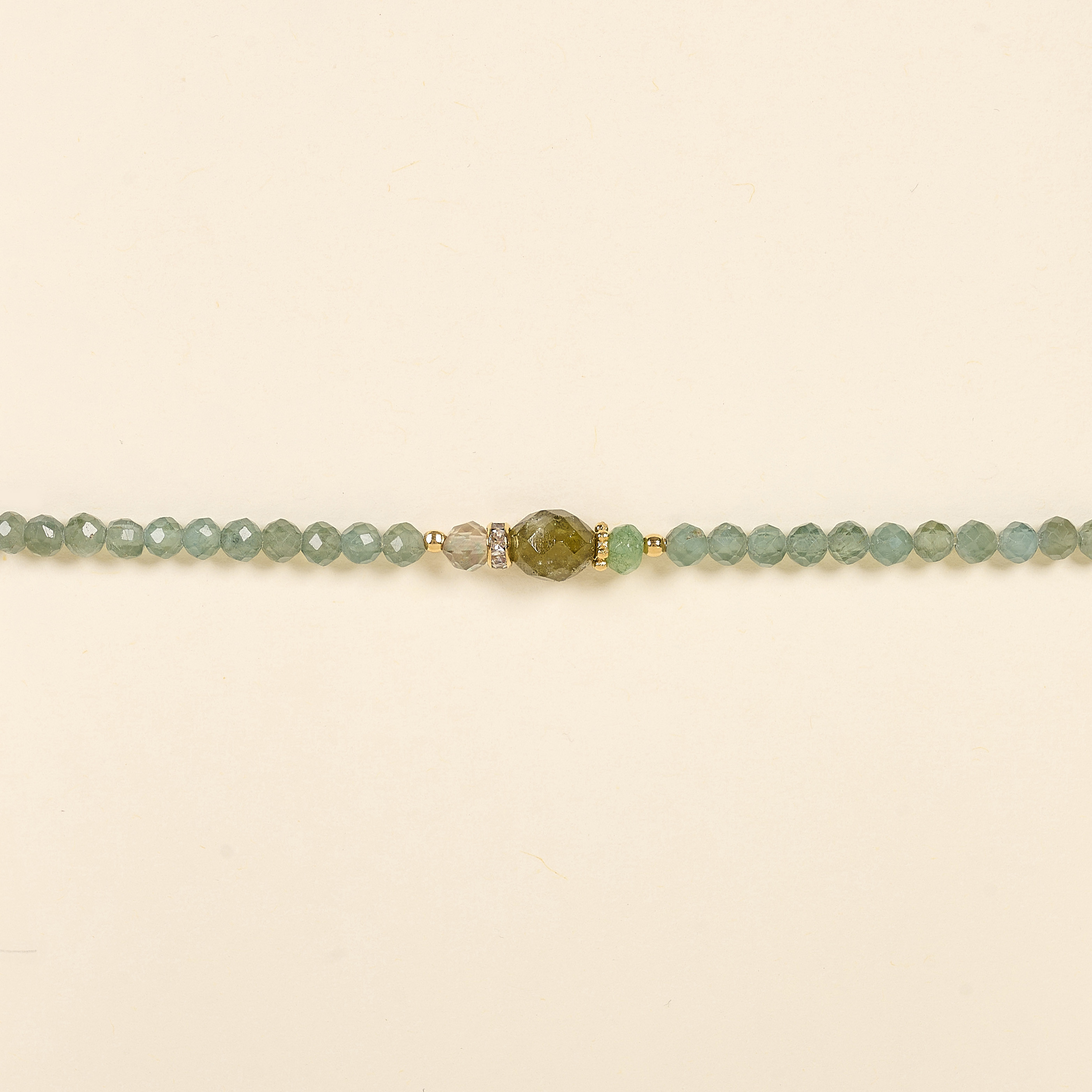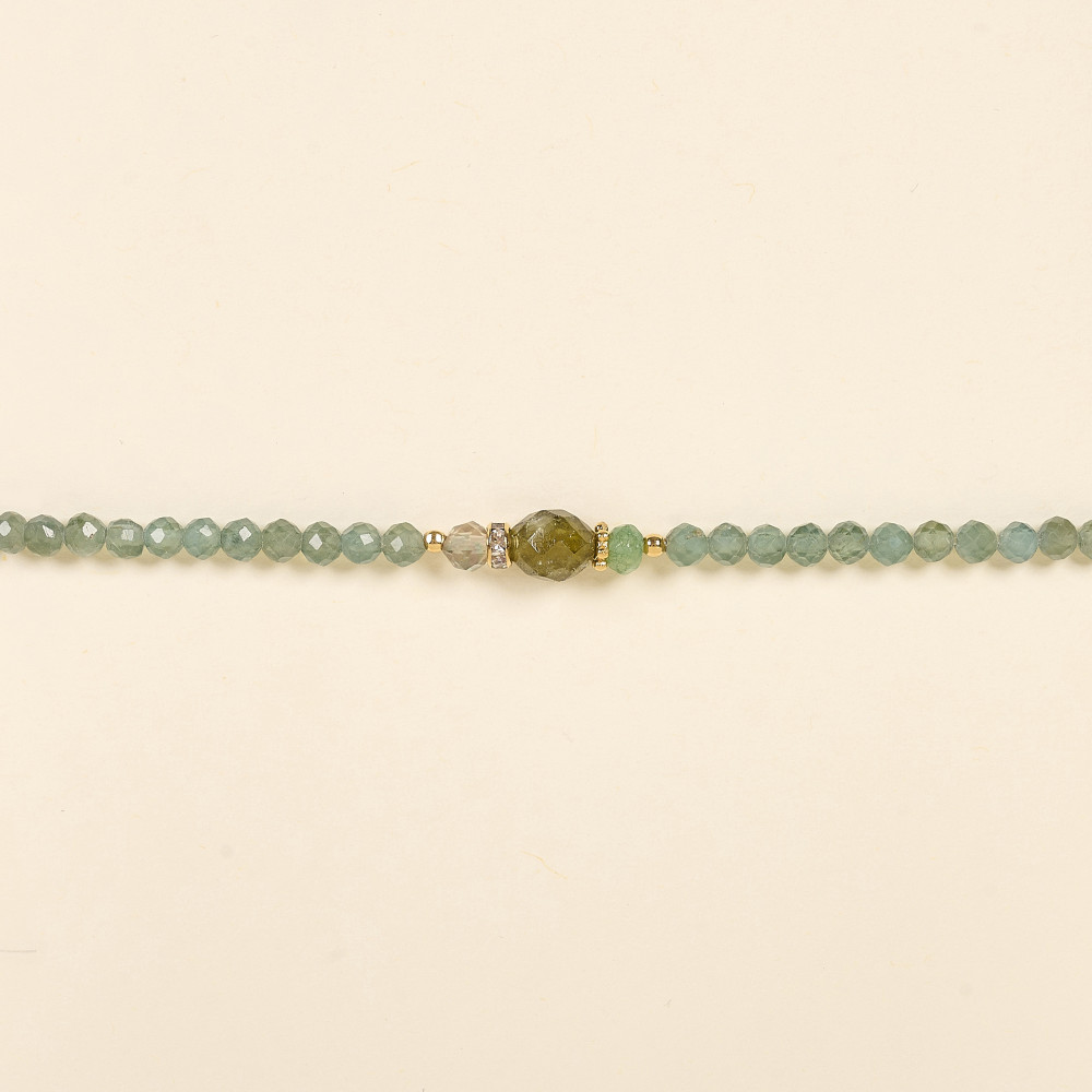 Le bracelet Bell associe des perles en apatite verte facettées à une pierre ovale en grenat vert.