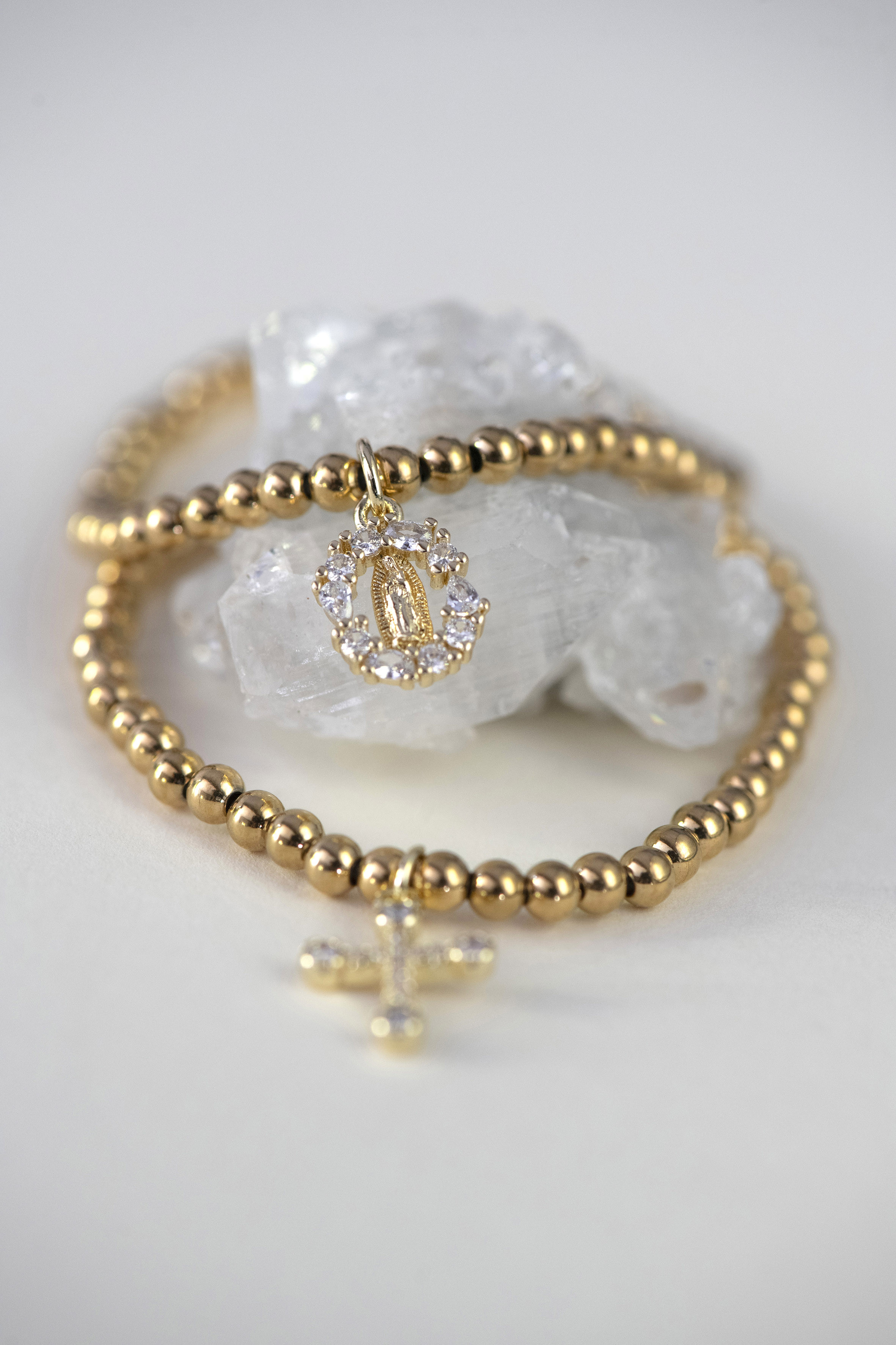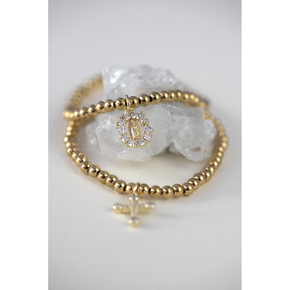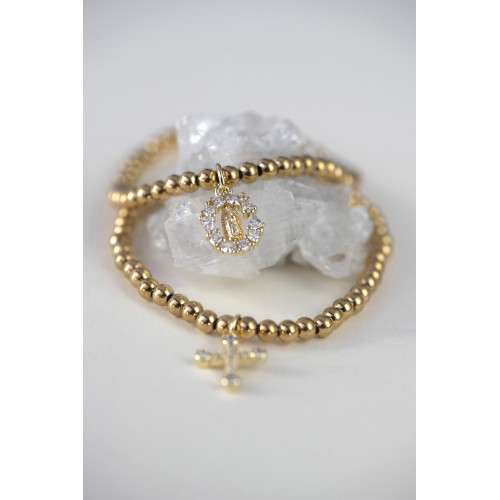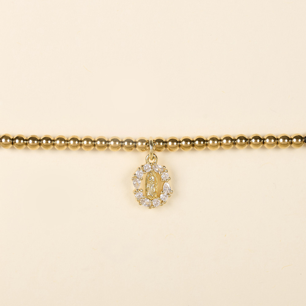 En son centre, une vierge délicatement sertie d'oxydes de zirconium apporte une touche lumineuse et symbolique.