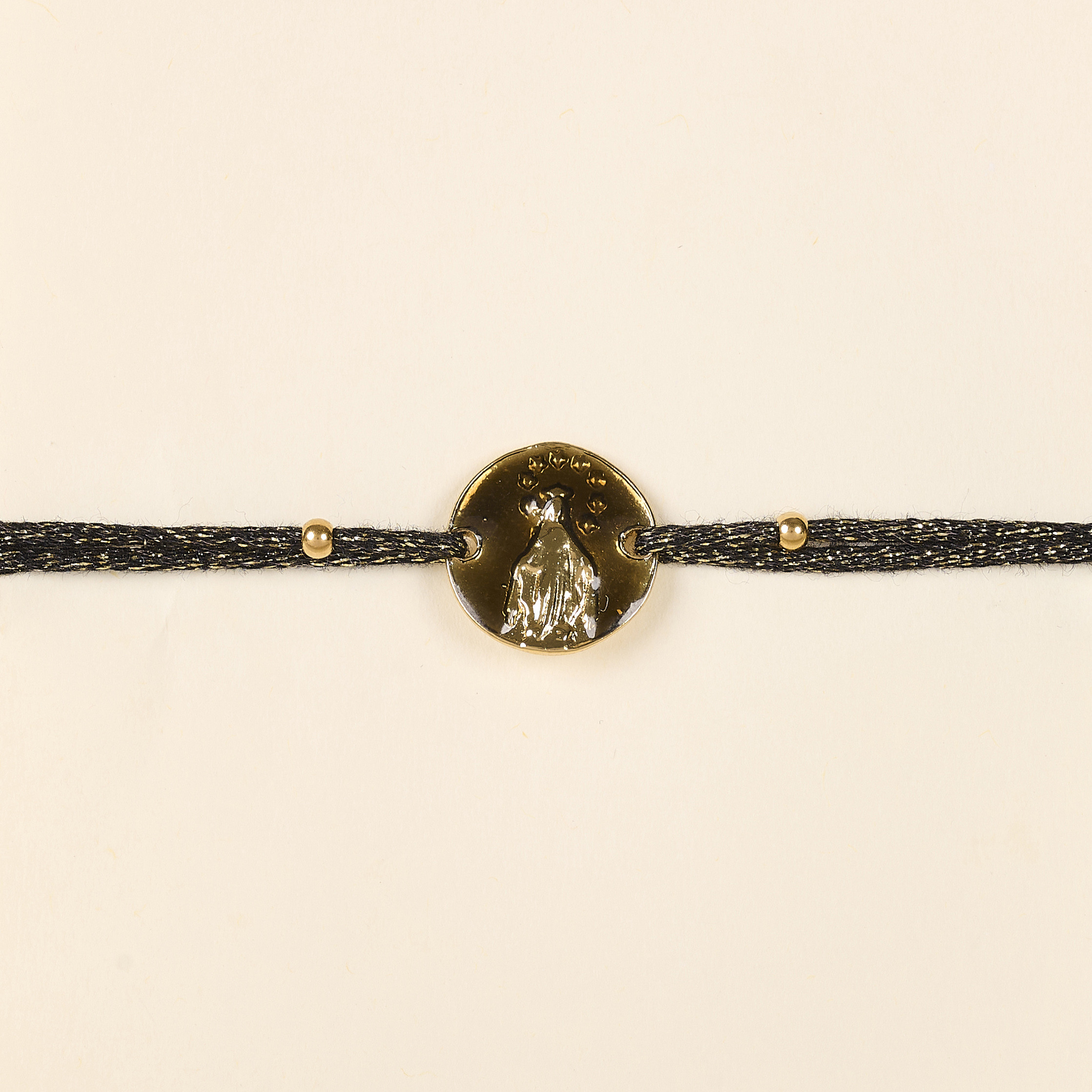 Le bracelet Liam est un bracelet coulissant en lurex, orné d’un maillon central représentant une silhouette céleste couronnée de huit étoiles. Émaillée à la main dans notre atelier et délicatement parsemée de très fines paillettes dorées, cette figure symbolise la lumière, la protection et la paix intérieure. Elle incarne la présence bienveillante d’un amour qui veille.