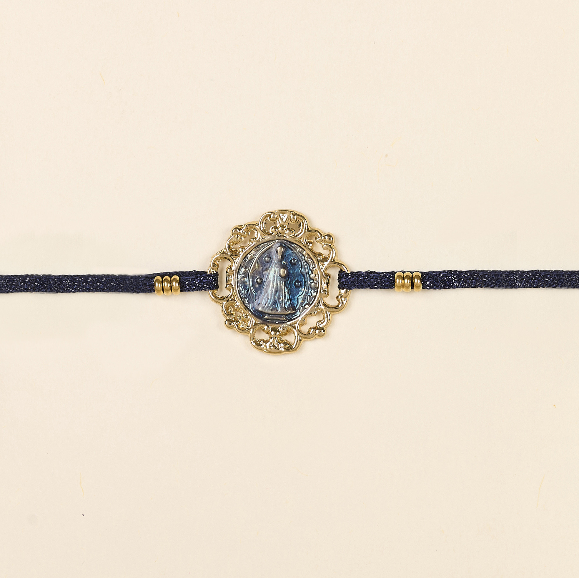 Élégant et intemporel, le bracelet Lior Marine By Garance se distingue par son cordon lurex bleu profond et sa pierre centrale lumineuse sertie de doré. Son système coulissant permet un ajustement parfait, faisant de ce bijou un incontournable chic du quotidien.