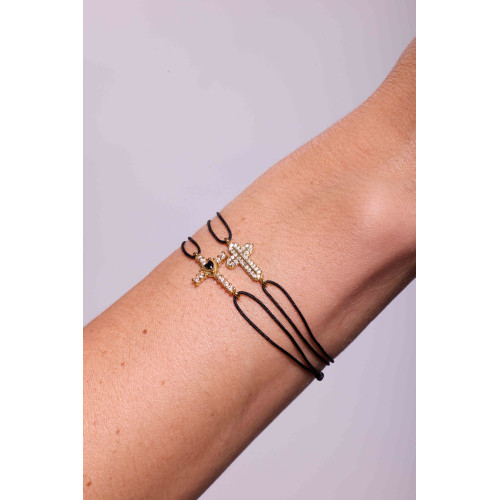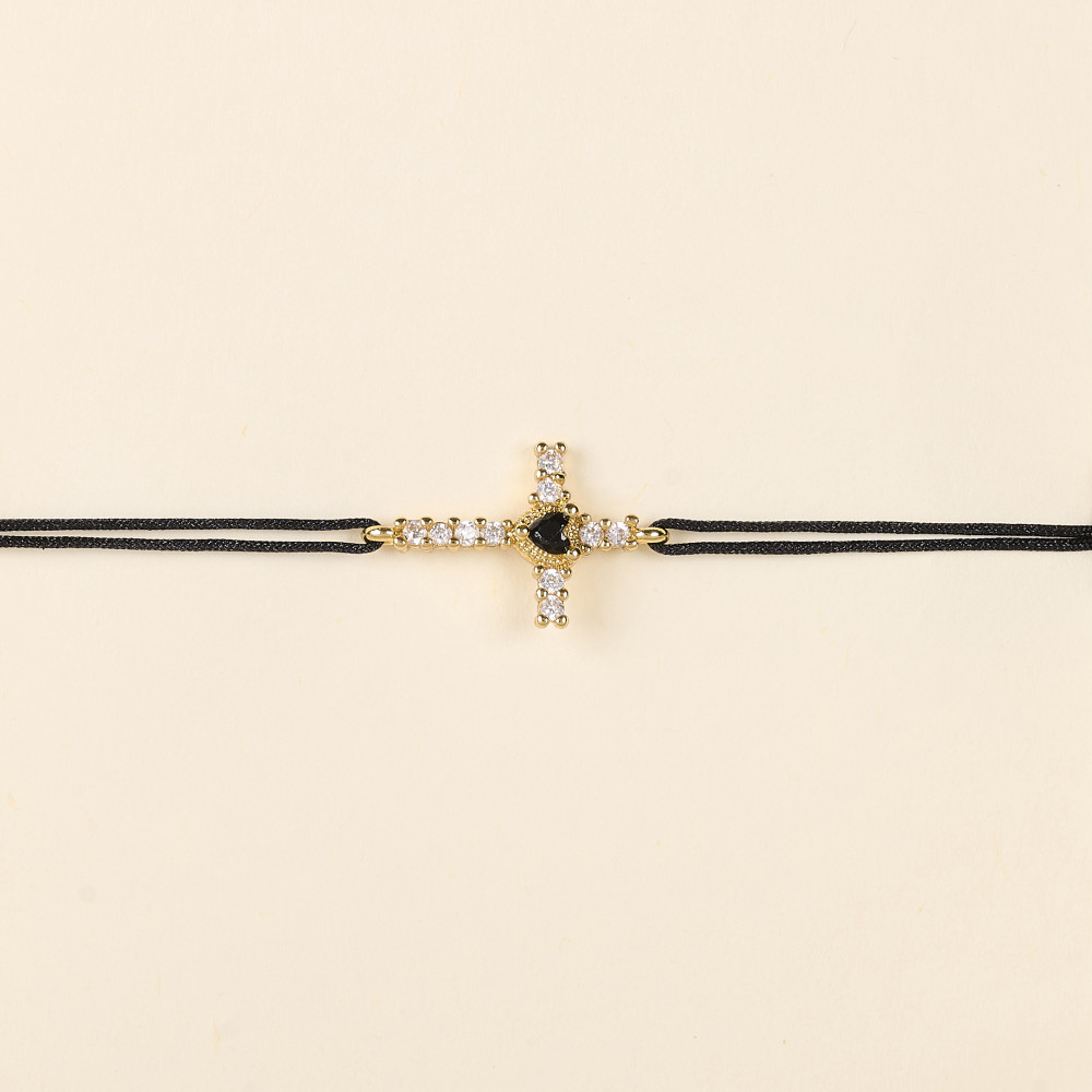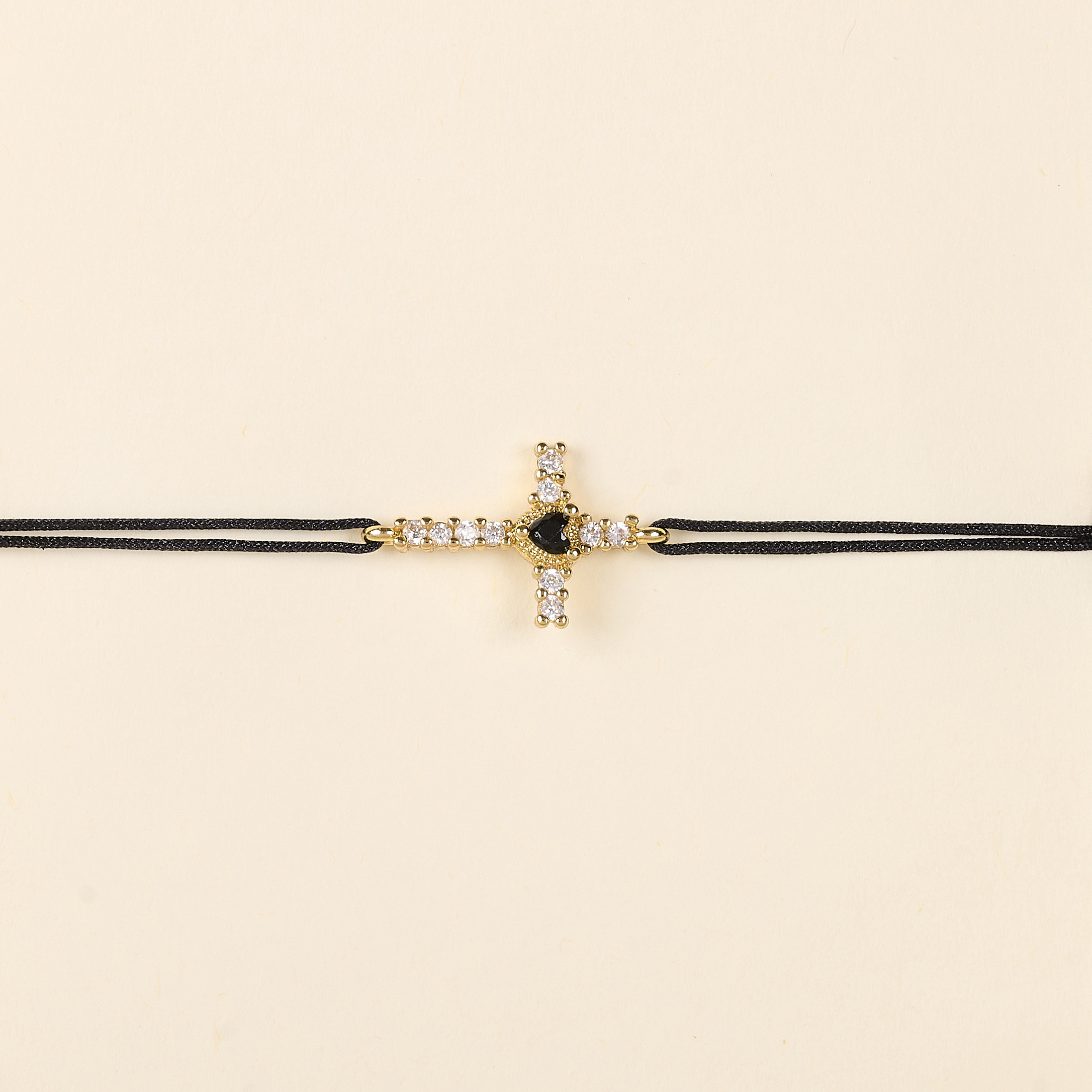 Le bracelet Luca séduit par son élégance discrète. Sa croix sertie d’oxydes de zirconium capte la lumière avec délicatesse et se décline en deux versions : cristal ou noir.