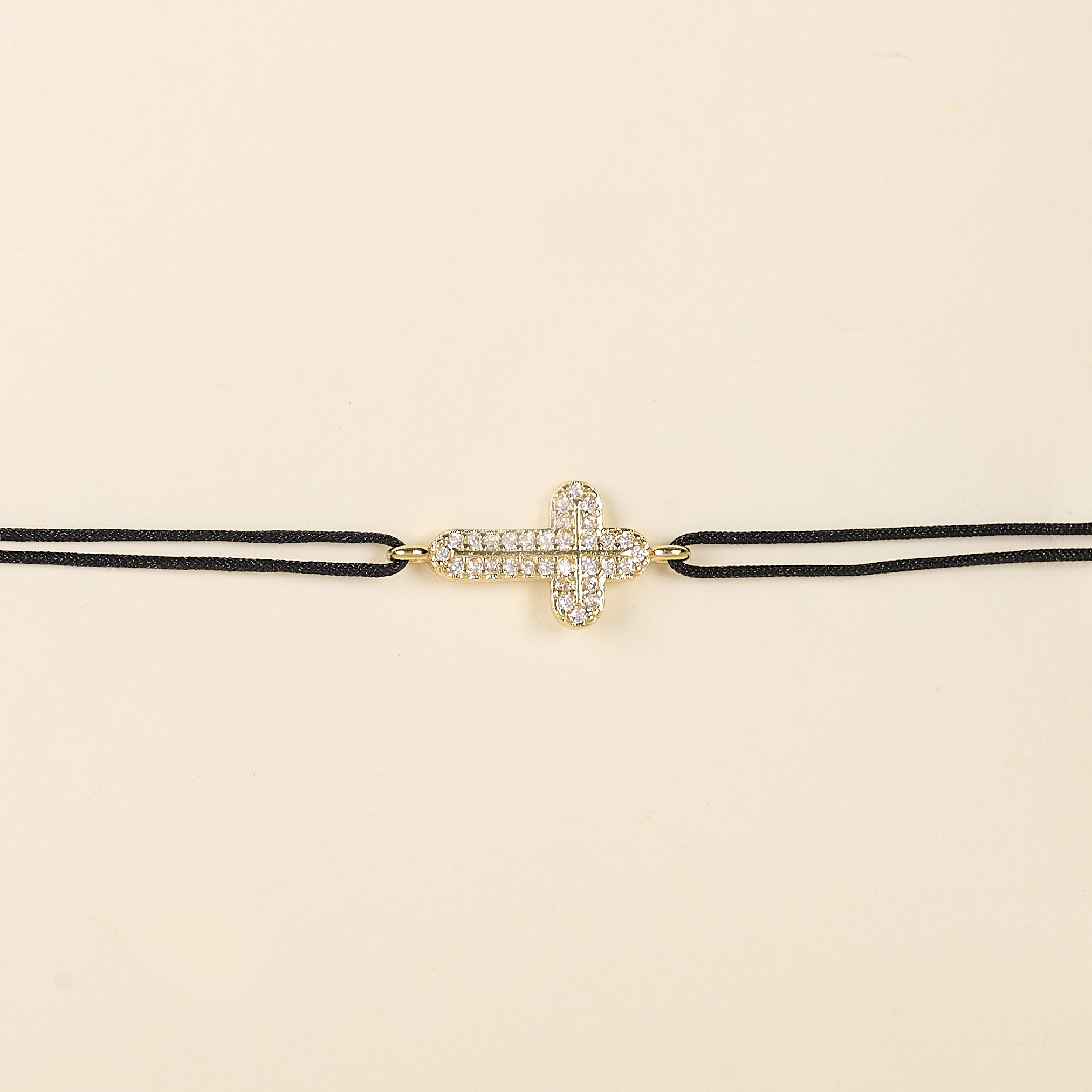 Le bracelet Luca séduit par son élégance discrète. Sa croix sertie d’oxydes de zirconium capte la lumière avec délicatesse et se décline en deux versions : cristal ou noir.
