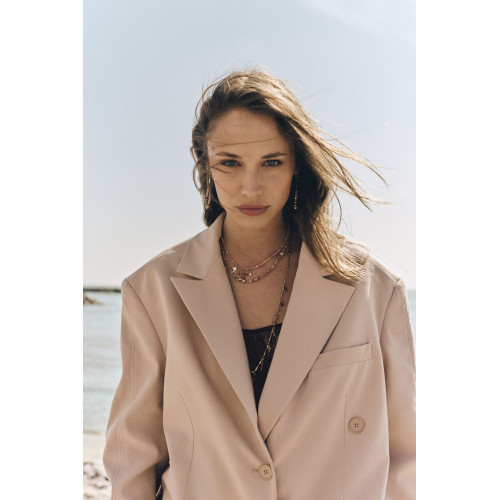 La fermeture est sublimé par deux gros mousqueton dorés, qui peuvent se porter aussi bien devant que sur le côté, apportant une touche de caractère.
