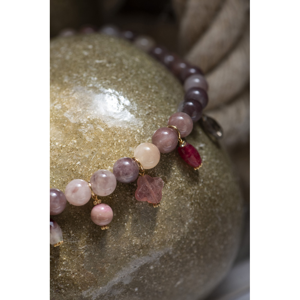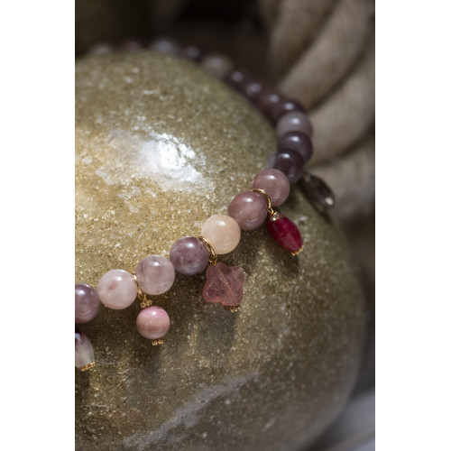 Le collier Budi séduit par sa douceur et son éclat naturel. Il se compose de perles de quartz fraise de 8 mm de diamètre, dont les nuances rosées apportent une touche délicate et féminine à votre allure.