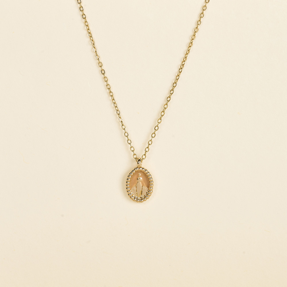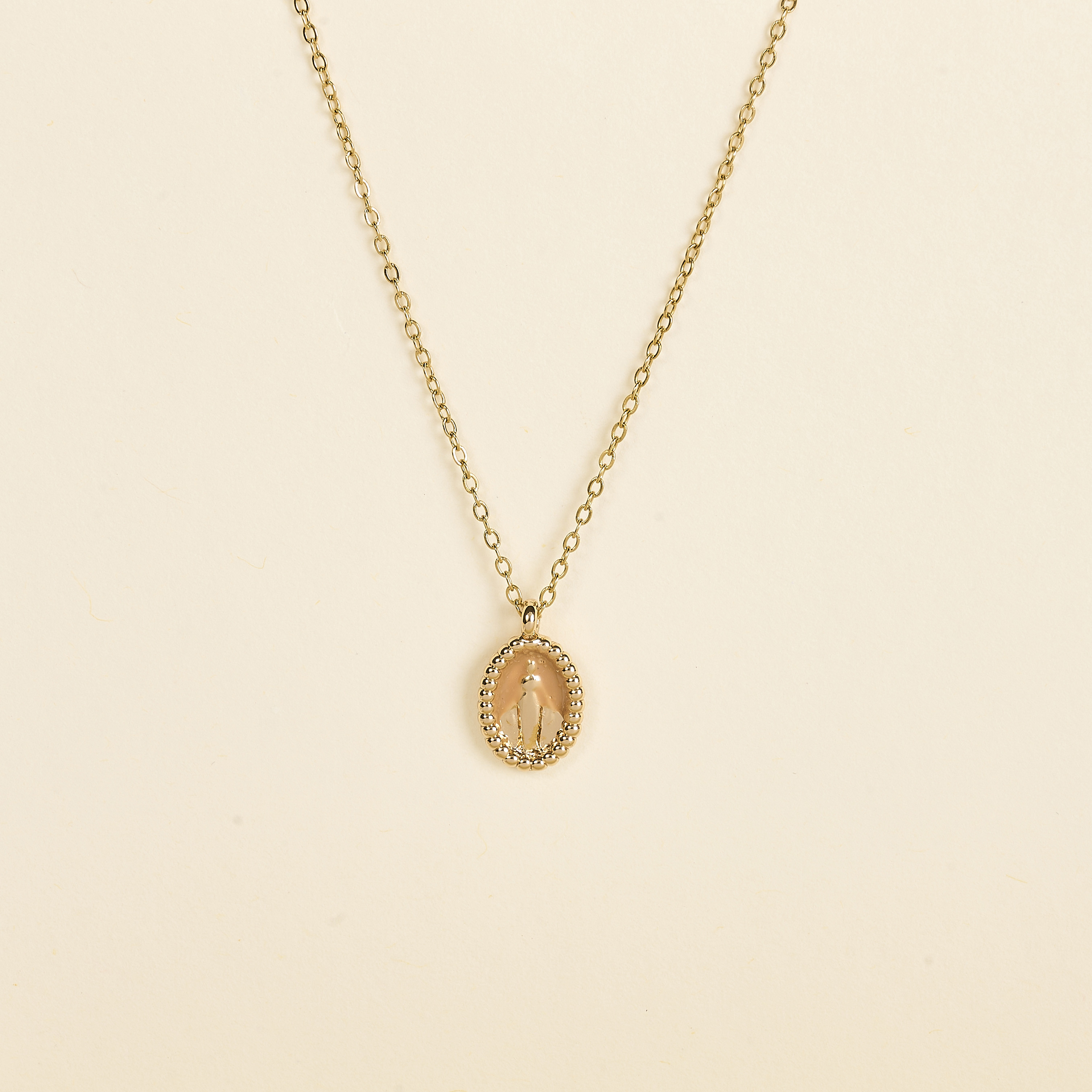 Le collier Jada Camel dégage une élégance solaire. Son émail chaud et doré, cerclé de perles dorées, évoque la terre et la lumière, pour un bijou à l’allure bohème et raffinée.