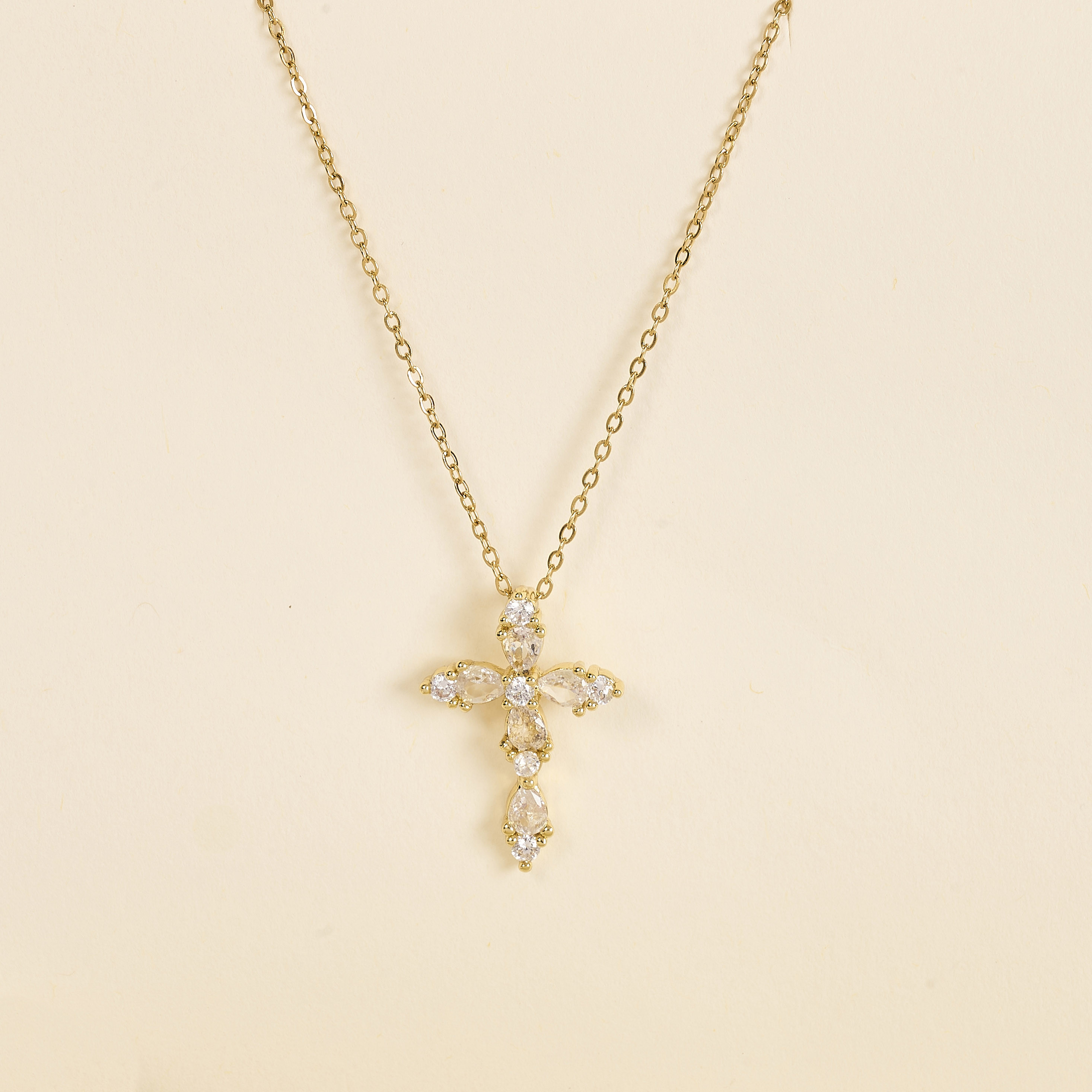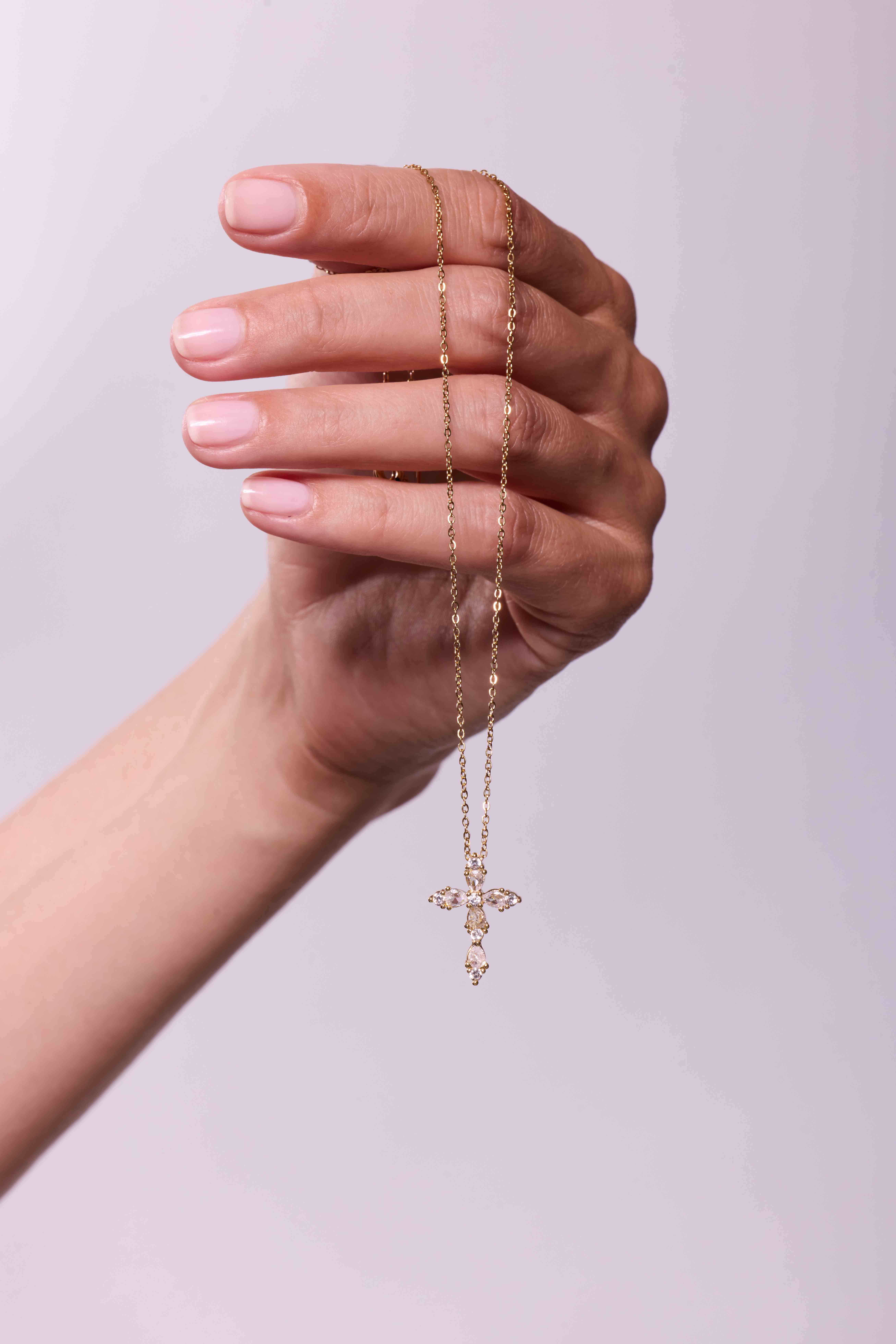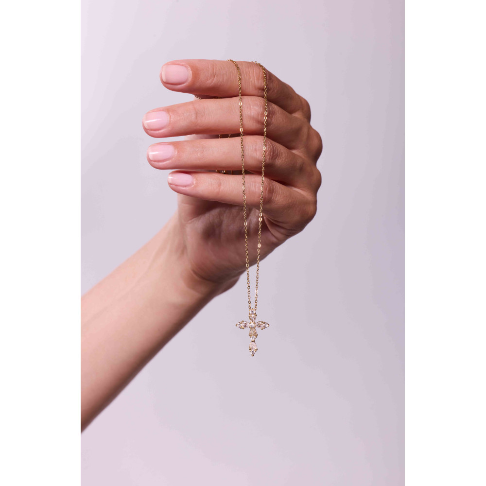 Le collier Joël Croix Cristal illumine avec une croix délicatement sertie d’oxydes de zirconium. Ses pierres taillées reflètent la lumière avec éclat pour un bijou à la fois raffiné et intemporel.