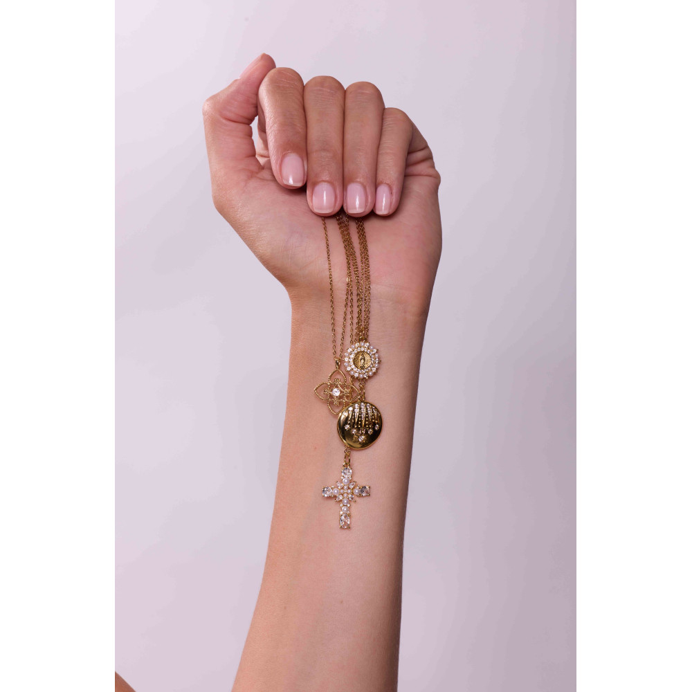Le collier Joël Croix Perlée associe la douceur des perles et la brillance des zircons. Sa croix dorée, délicatement travaillée, allie élégance classique et modernité.