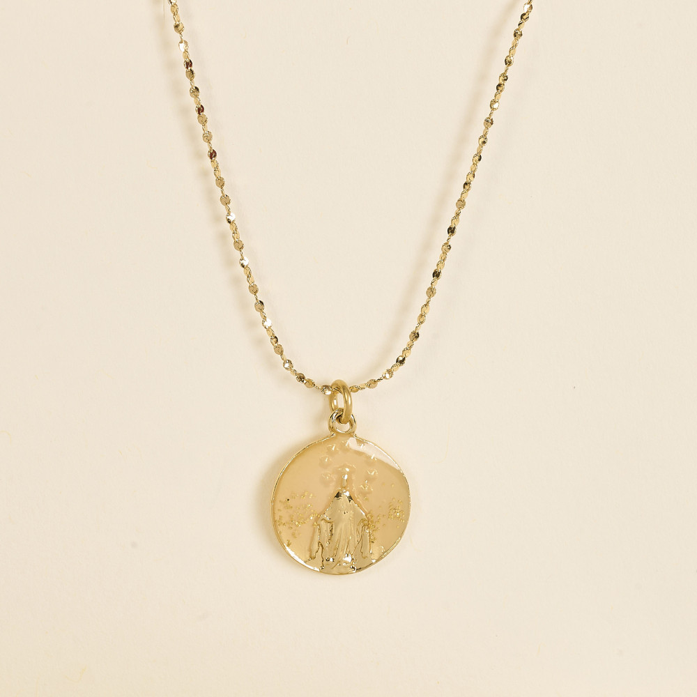 Le collier Liam Beige By Garance dévoile une médaille dorée au contour finement sculpté, sublimée par un émail beige naturel et élégant. Une pièce douce et réconfortante, parfaite pour un style raffiné et discret. Avec sa longueur de 38 cm, il habille joliment le décolleté.
