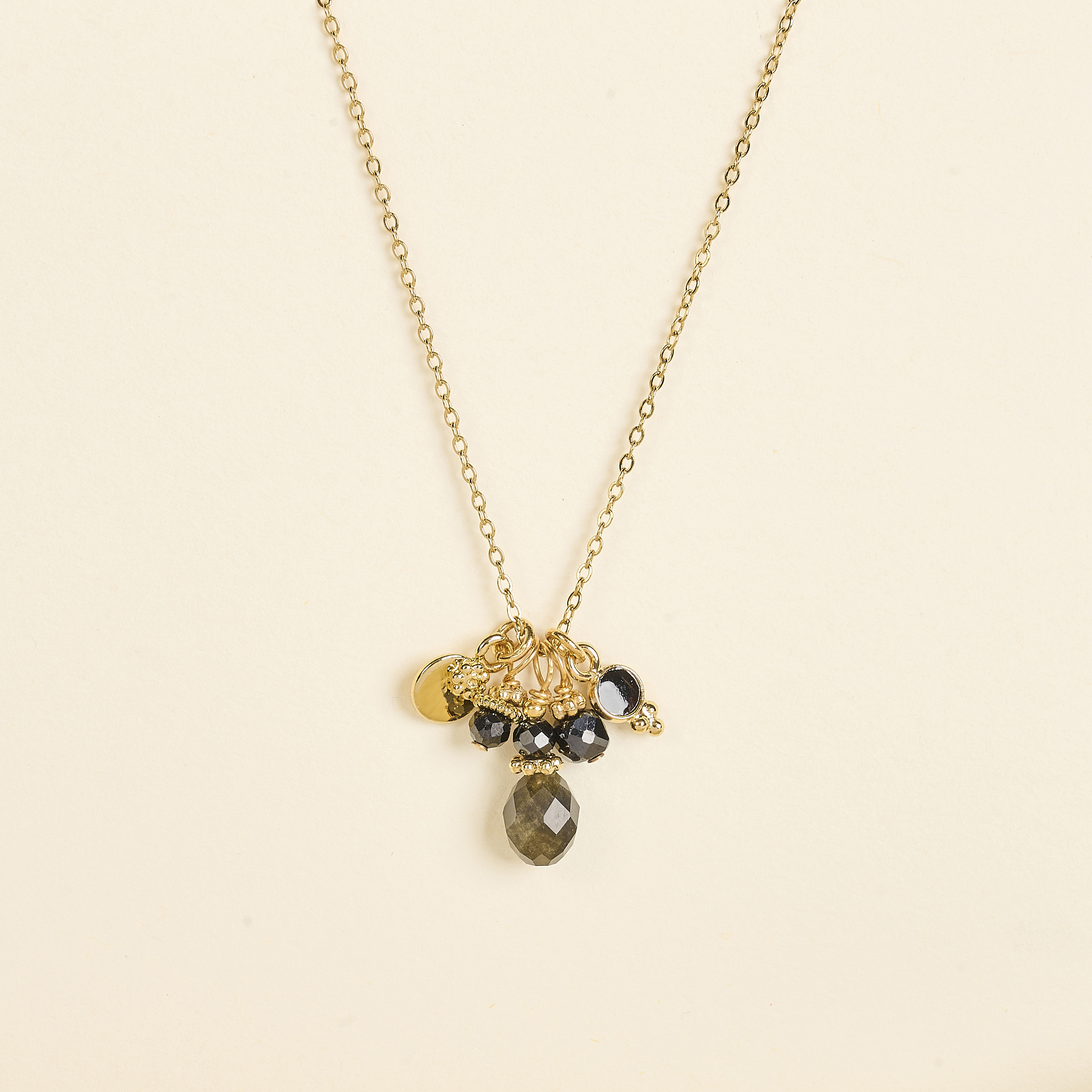 Le collier Miko ovale By Garance se compose d’une chaîne élégante en acier doré associée à un pendentif en laiton doré à l’or fin, serti d’une goutte d’obsidienne. Cette pierre profonde et brillante confère au bijou une aura mystérieuse et sophistiquée, parfaite pour sublimer le décolleté.