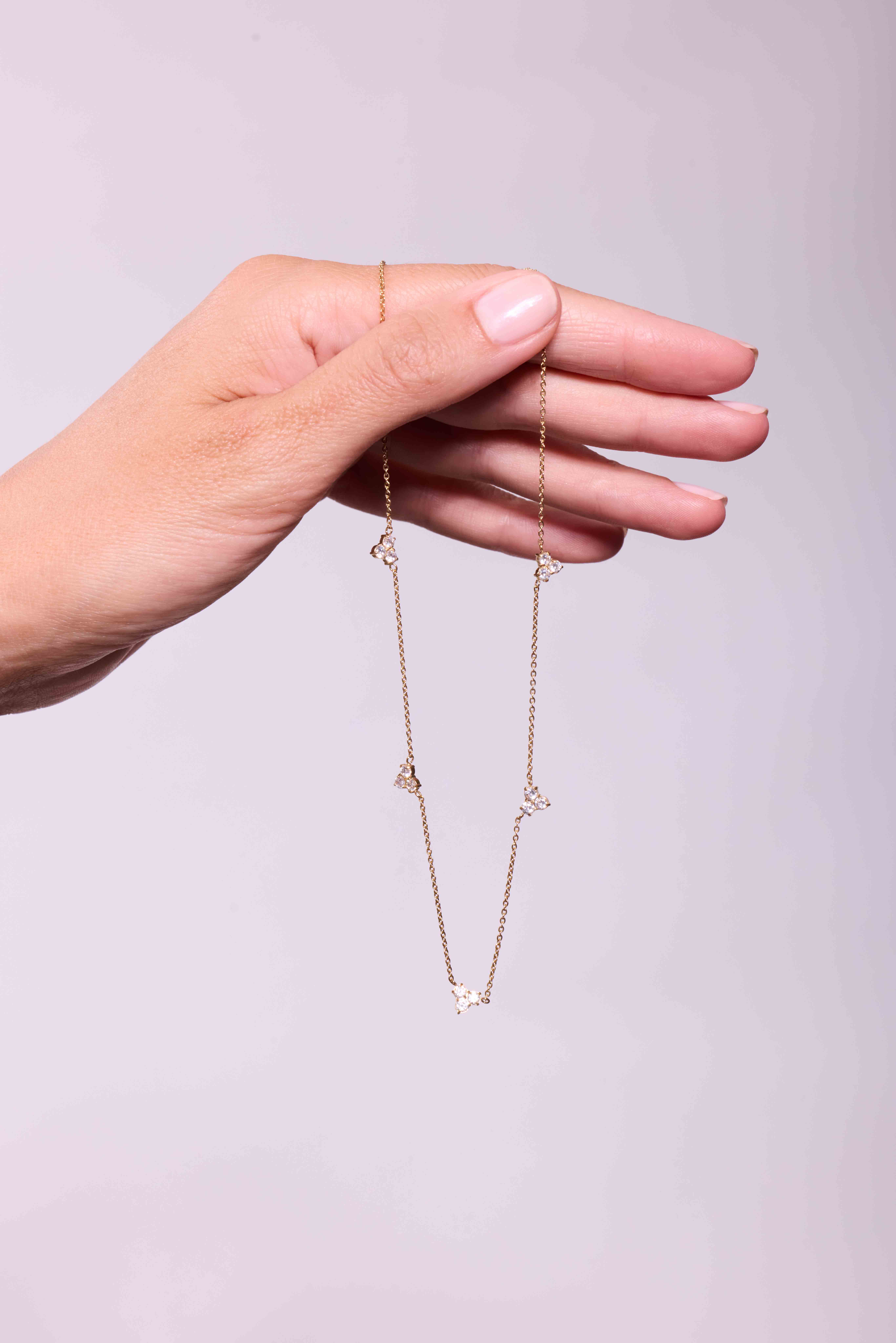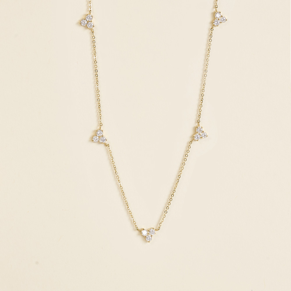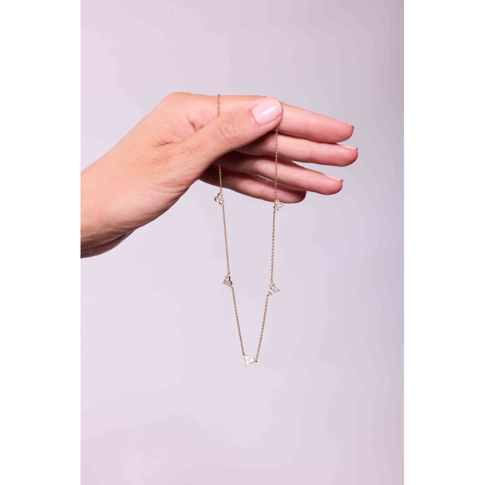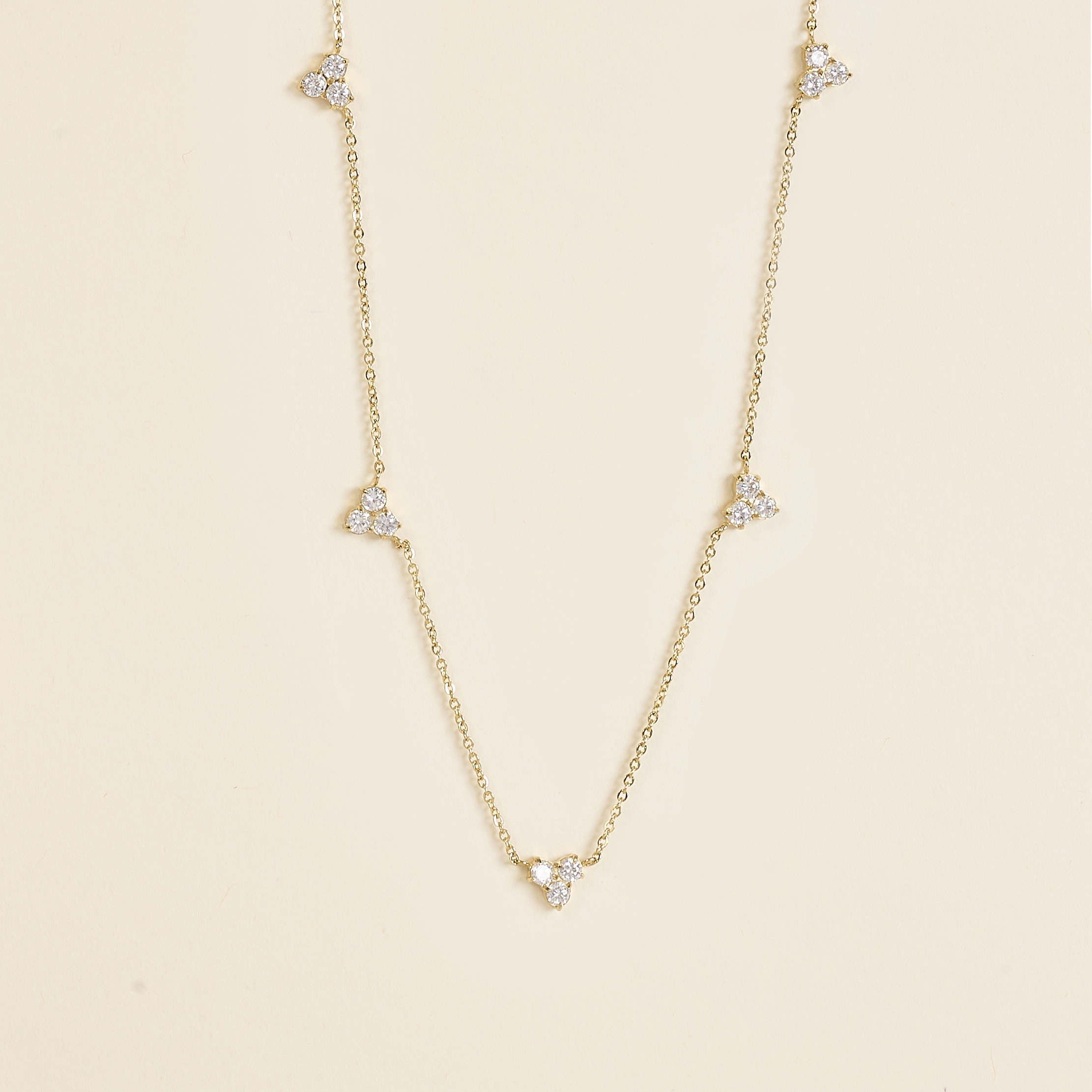 Le collier Sana est composé d’une chaîne en acier de 37 cm, complétée par une chaîne de rallonge pour un ajustement parfait. Il se distingue par une succession de pendentifs, chacun serti de trois cristaux d’oxyde de zirconium, apportant éclat et raffinement à l’ensemble.