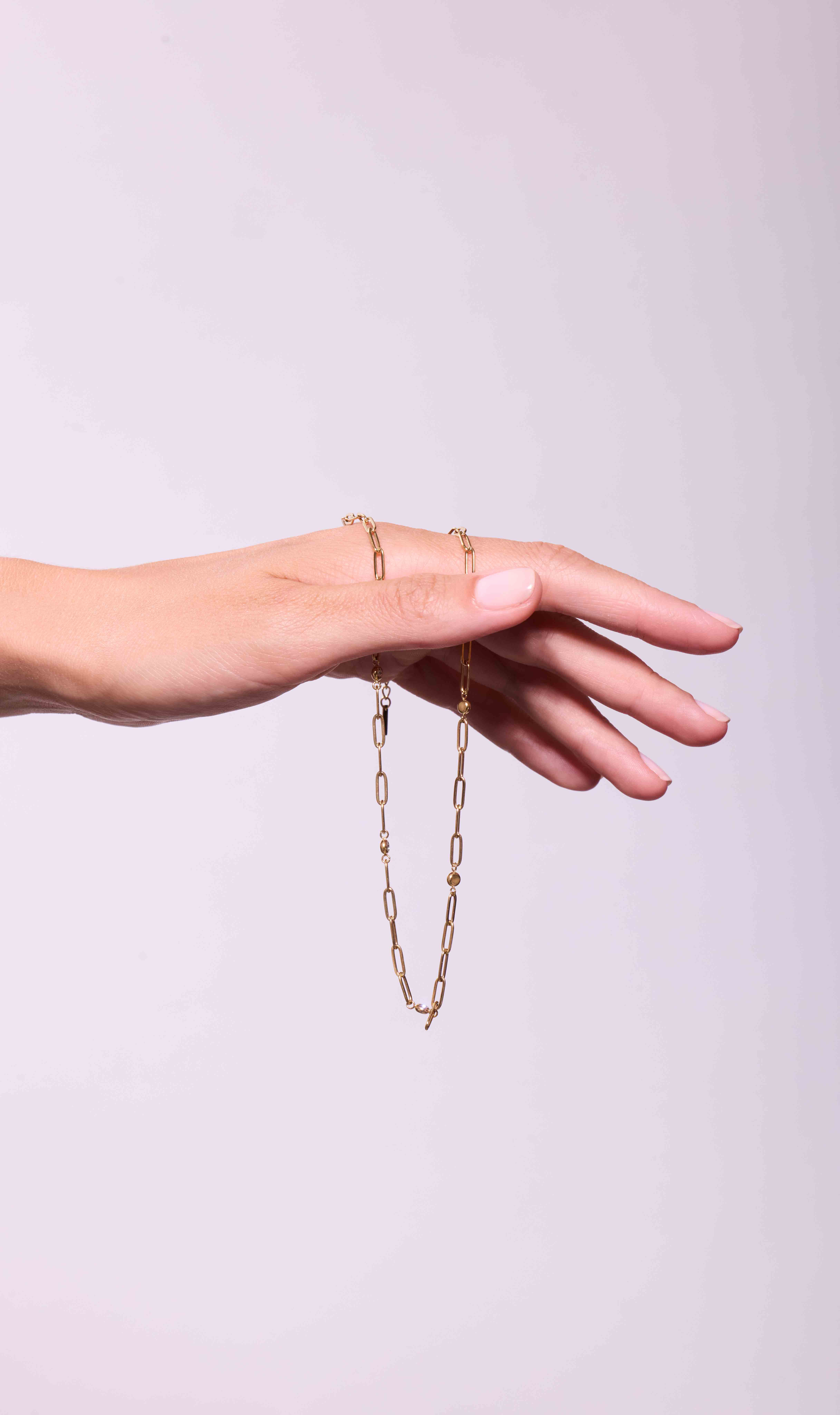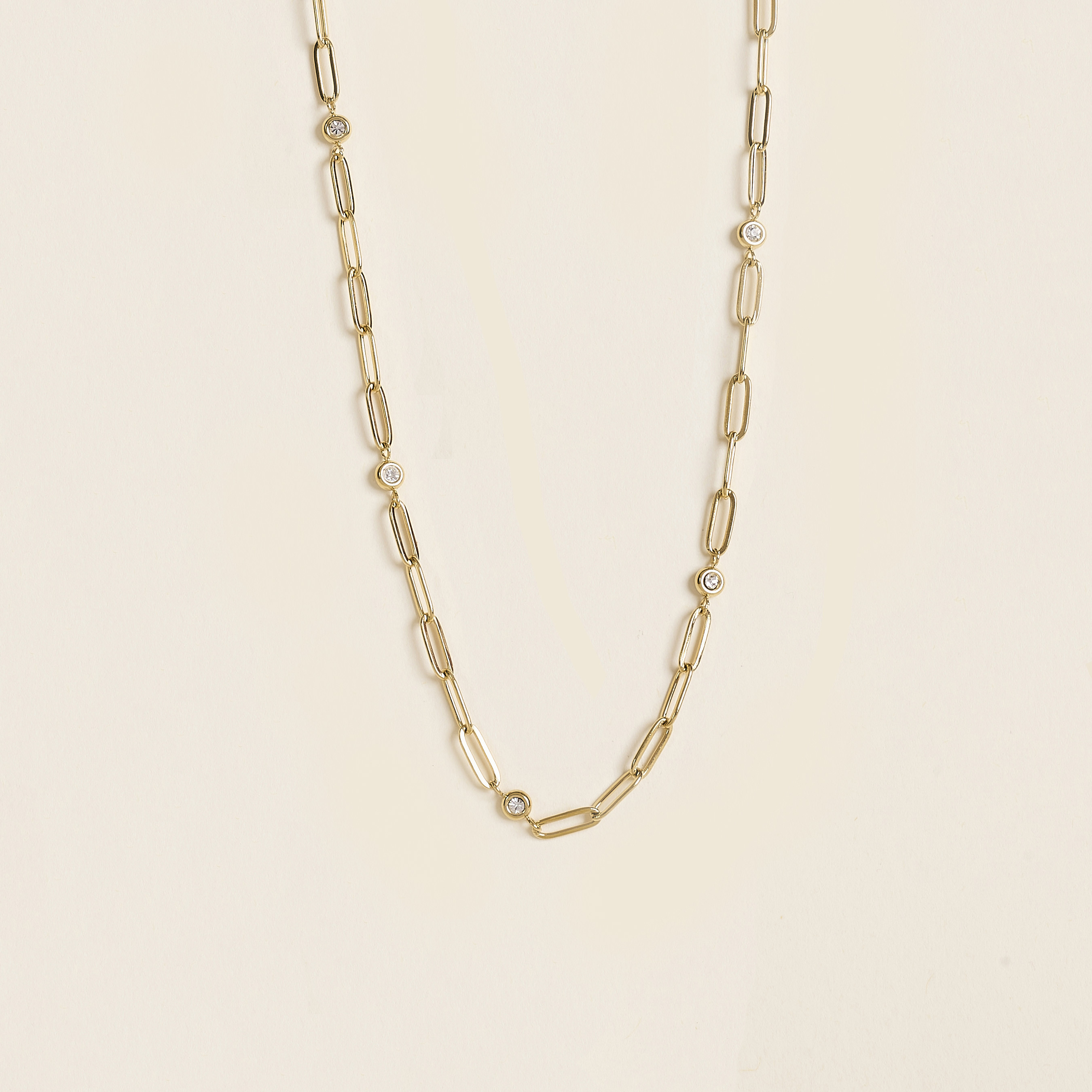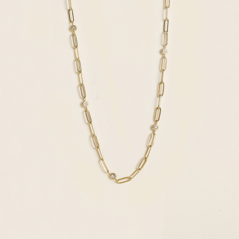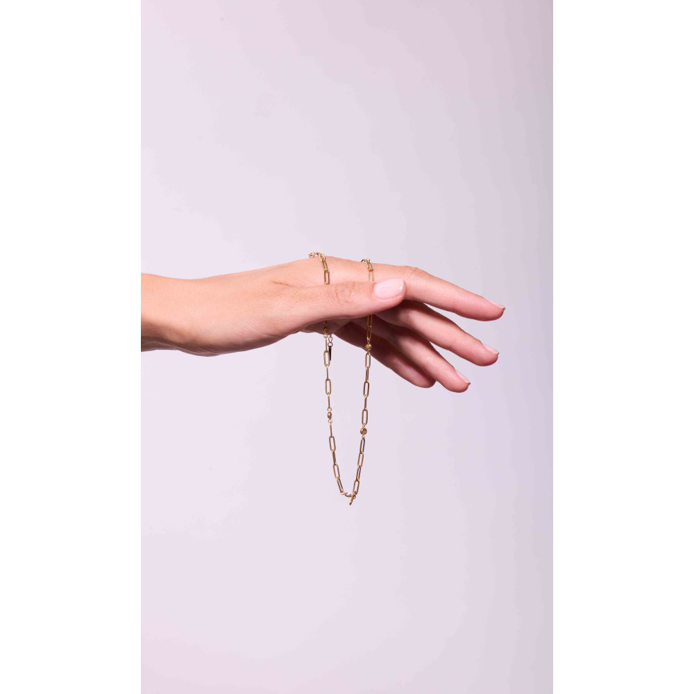 Le collier Sean se décline en deux versions, courte et longue. Ce modèle court se compose d’une succession de mailles rectangulaires arrondies, ponctuées de petits sertis clos tous les cinq maillons. Doux et raffiné, il se porte avec une grande facilité. Réalisé en acier, il offre une très belle tenue dans le temps. Sa longueur est de 37 cm.