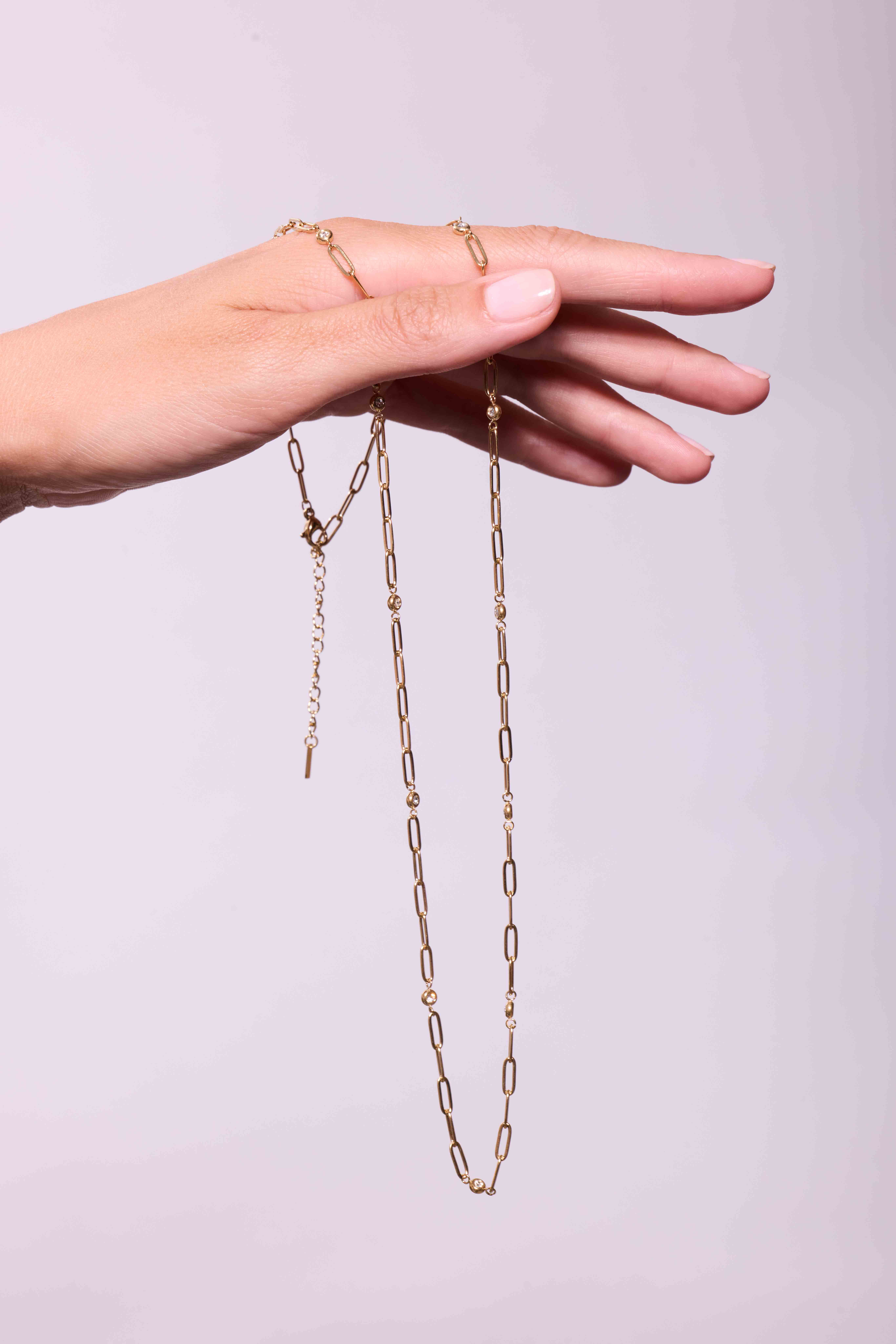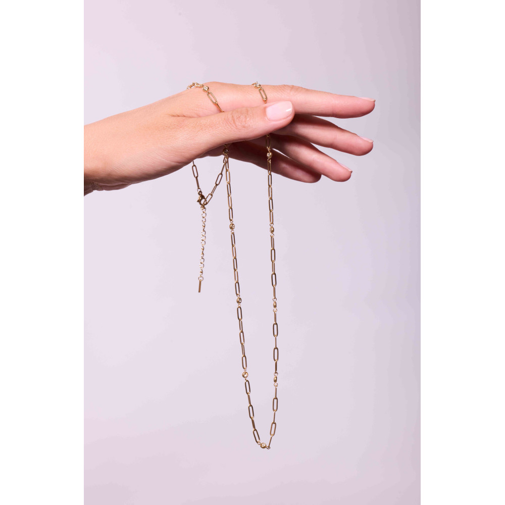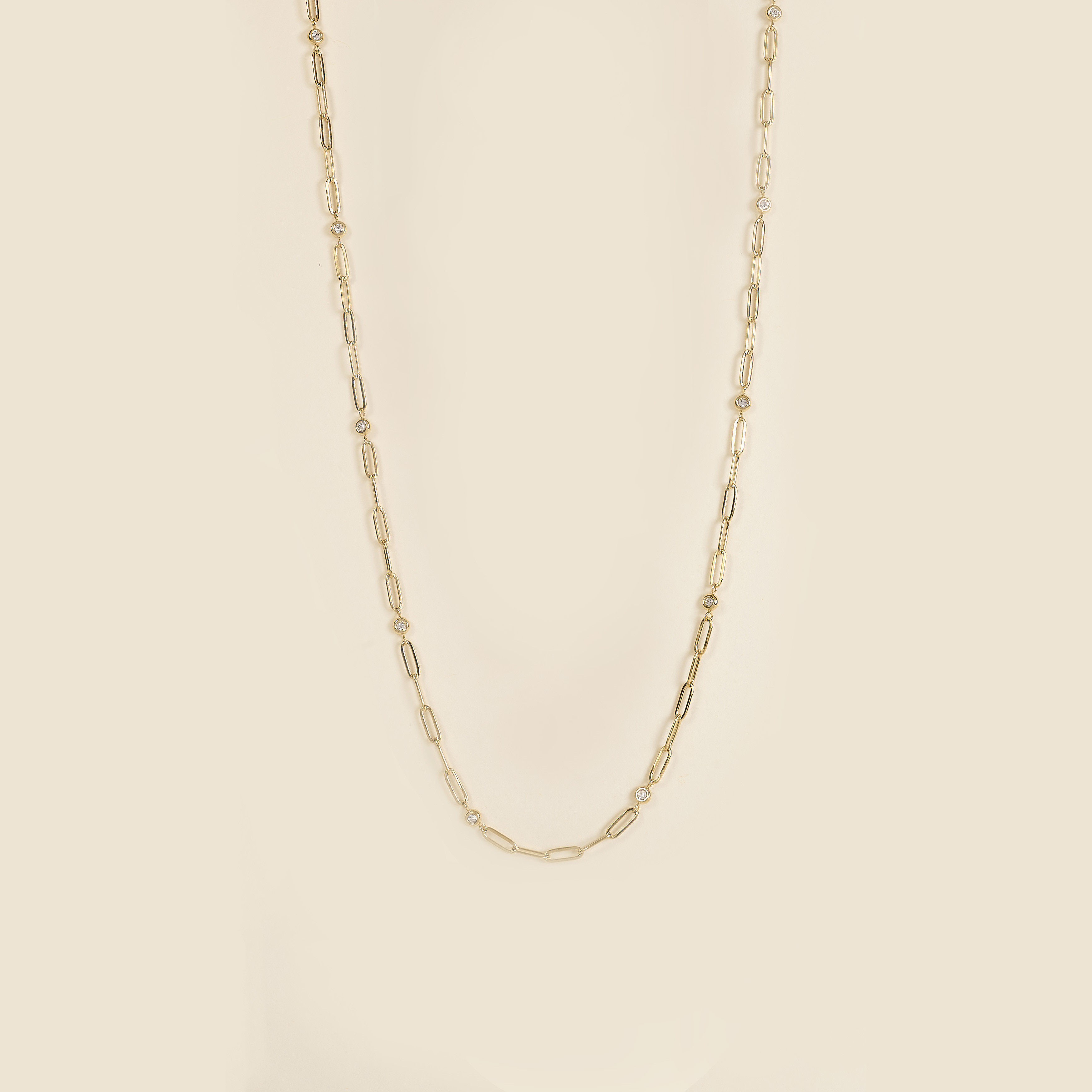 Le collier Sean se décline en deux versions, courte et longue. Ce modèle long se compose d’une succession de mailles rectangulaires arrondies, ponctuées de petits sertis clos tous les cinq maillons. Doux et raffiné, il se porte avec une grande facilité. Réalisé en acier, il offre une très belle tenue dans le temps. Sa longueur est de 70 cm.