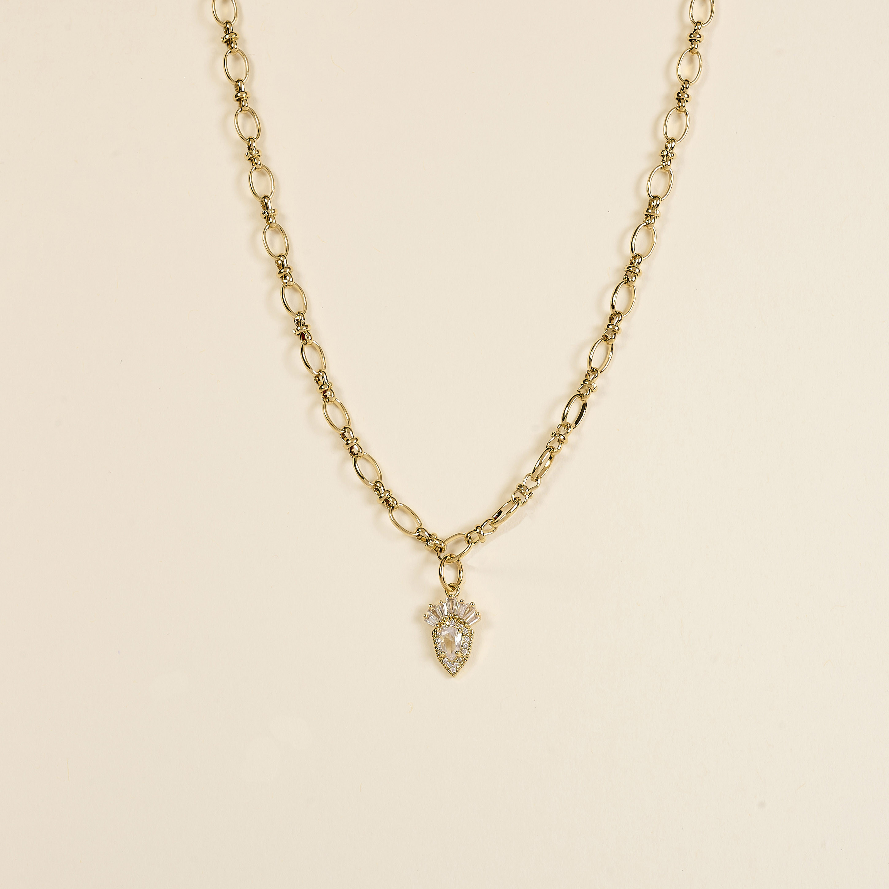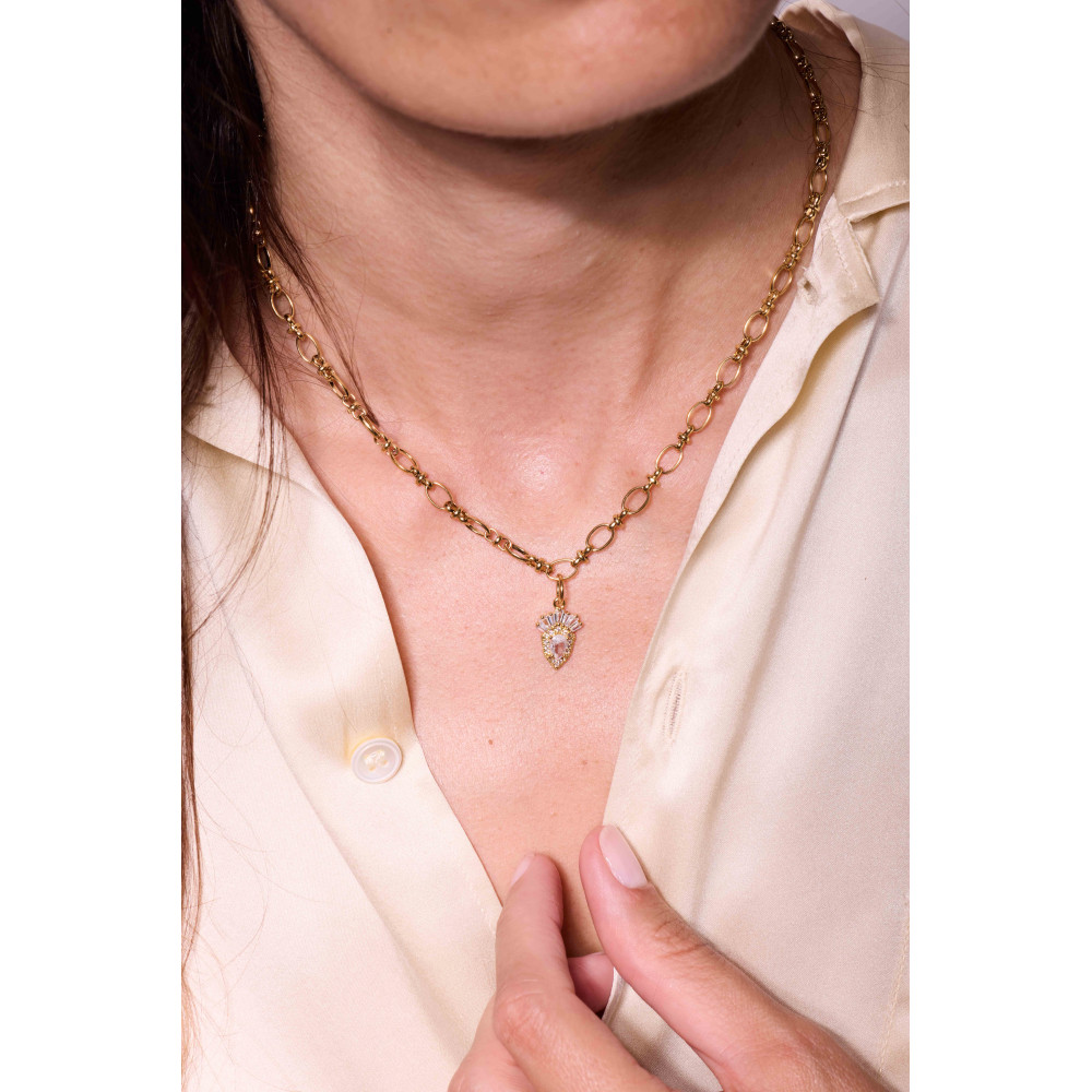 Le collier Sven se compose d’une chaîne épaisse en acier, sublimée par un pendentif serti d’oxydes de zirconium en forme de losange arrondi.